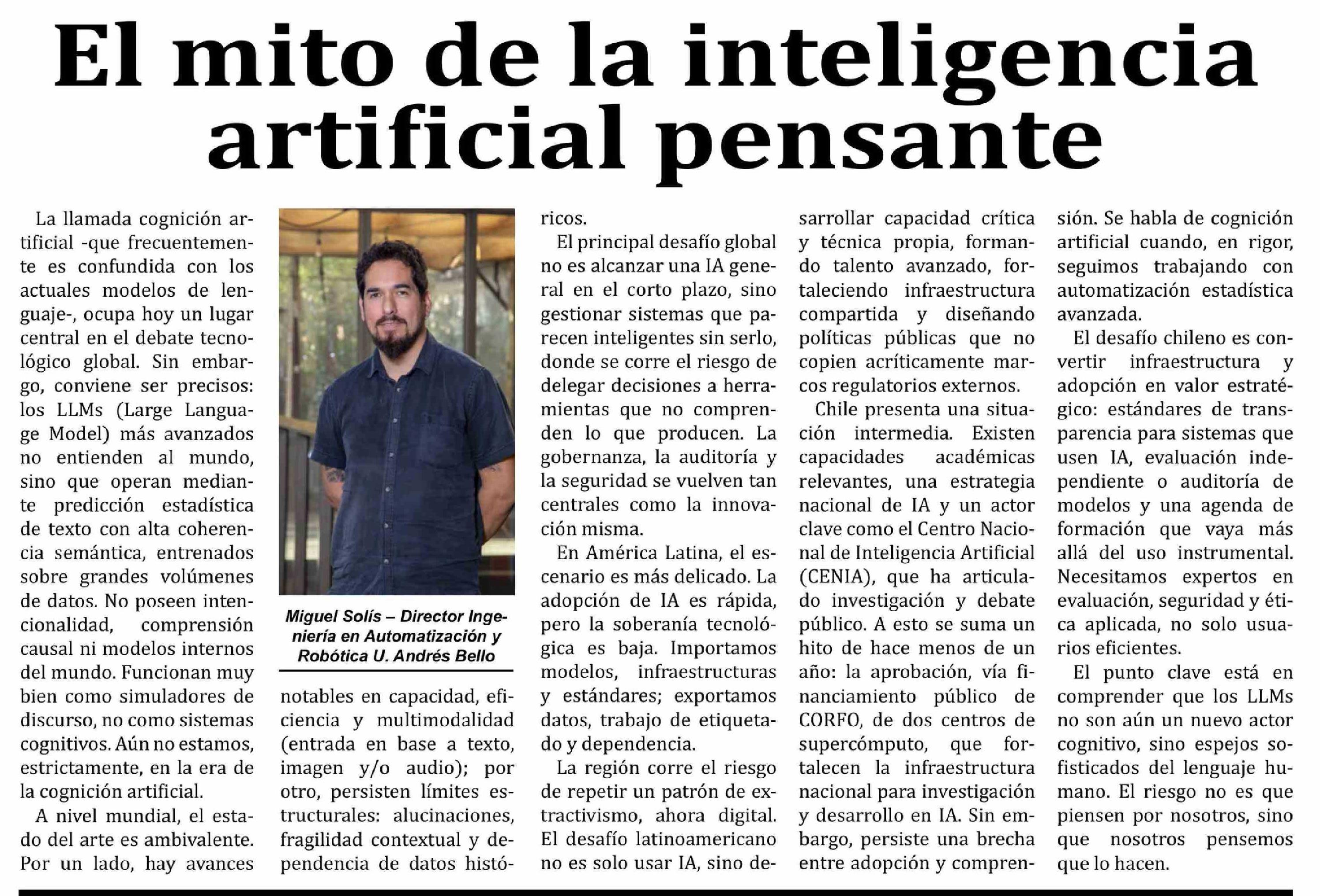 | Título: | Columnas de Opinión: El mito de la inteligencia artificial pensante |
