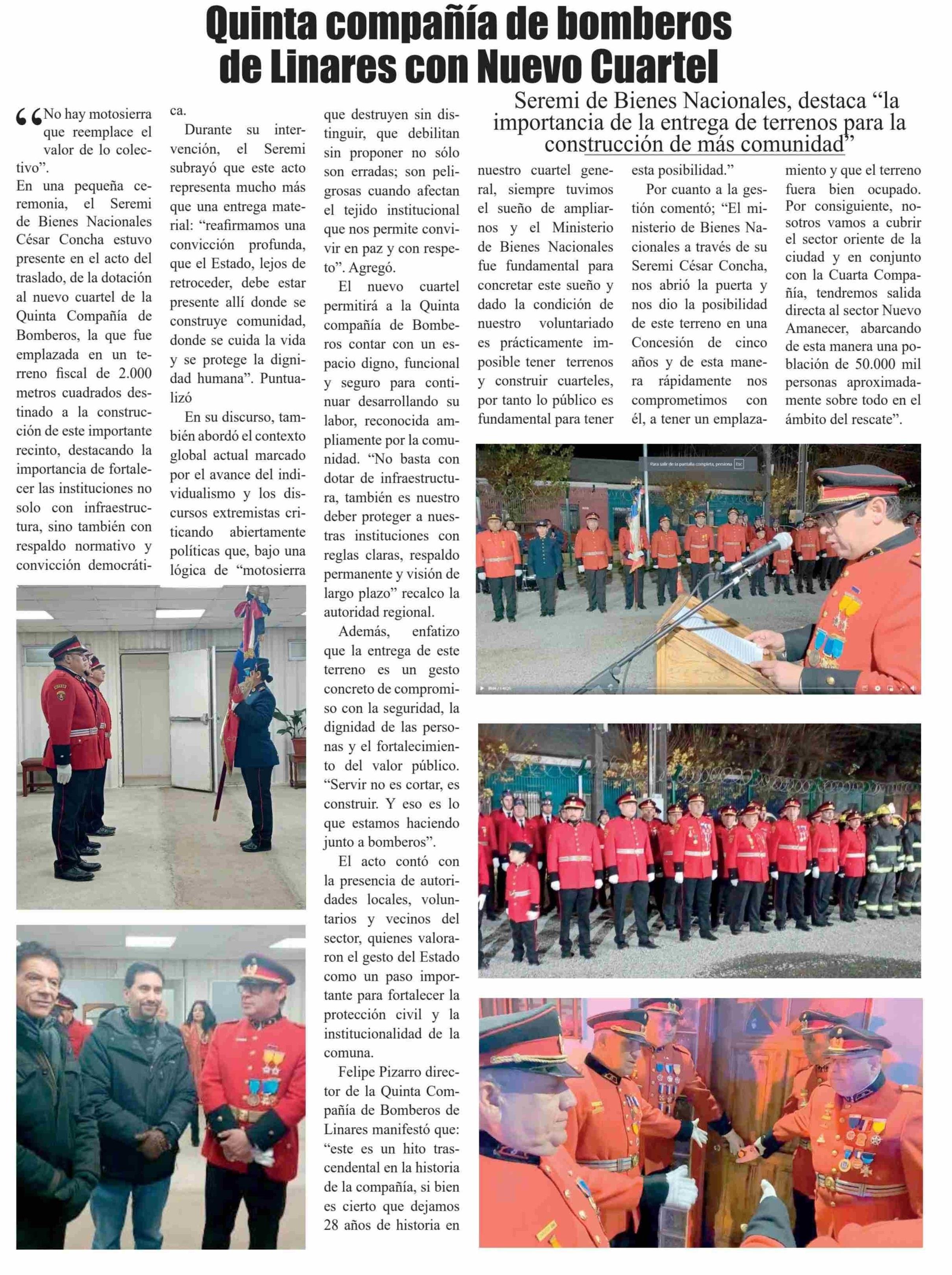Quinta compañia de bomberos de Linares con Nuevo Cuartel 03-06-2025 El Heraldo |