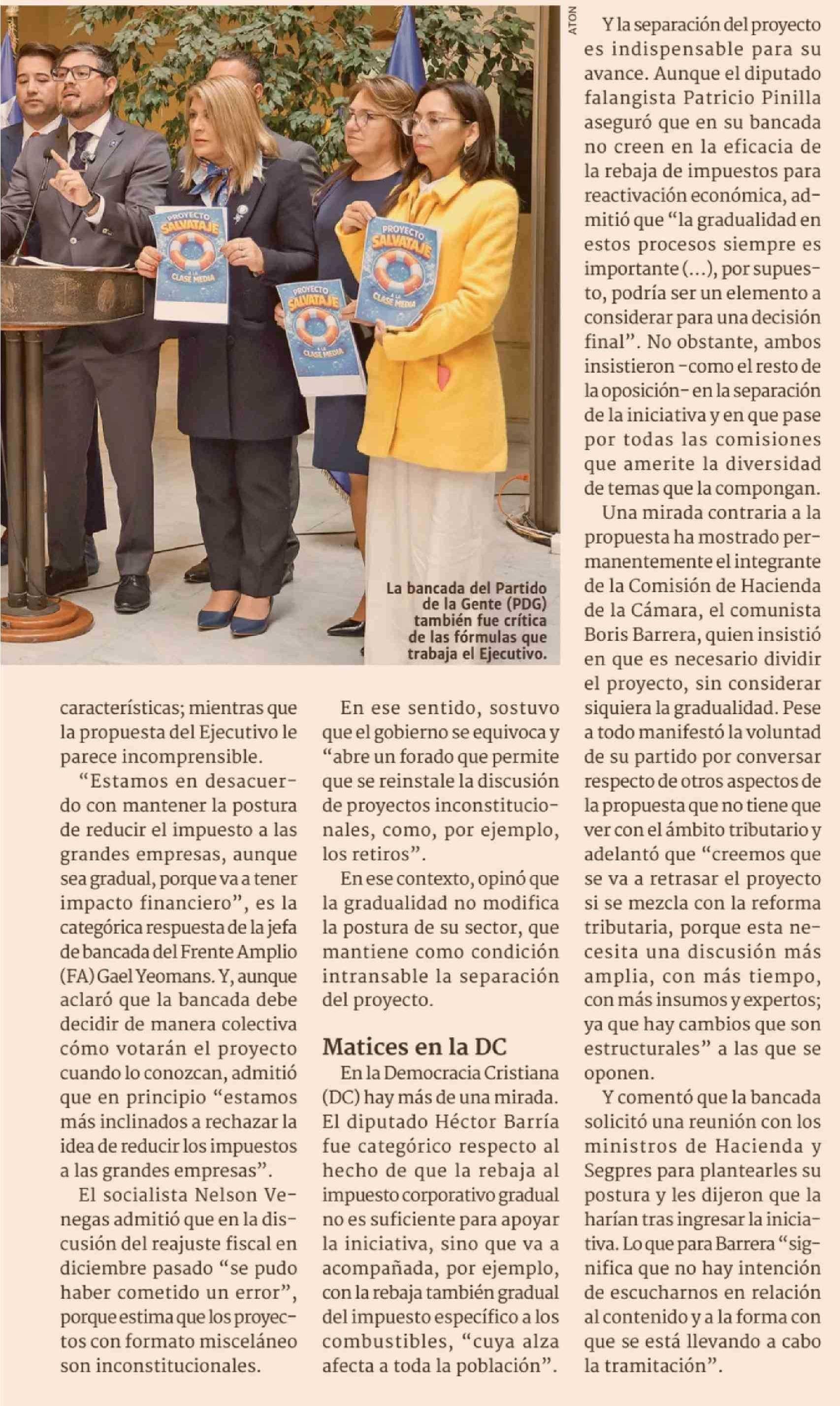 | Título: | Ley miscelánea: gobierno se abre a más ajustes, pero gradualidad no convence a la oposición |