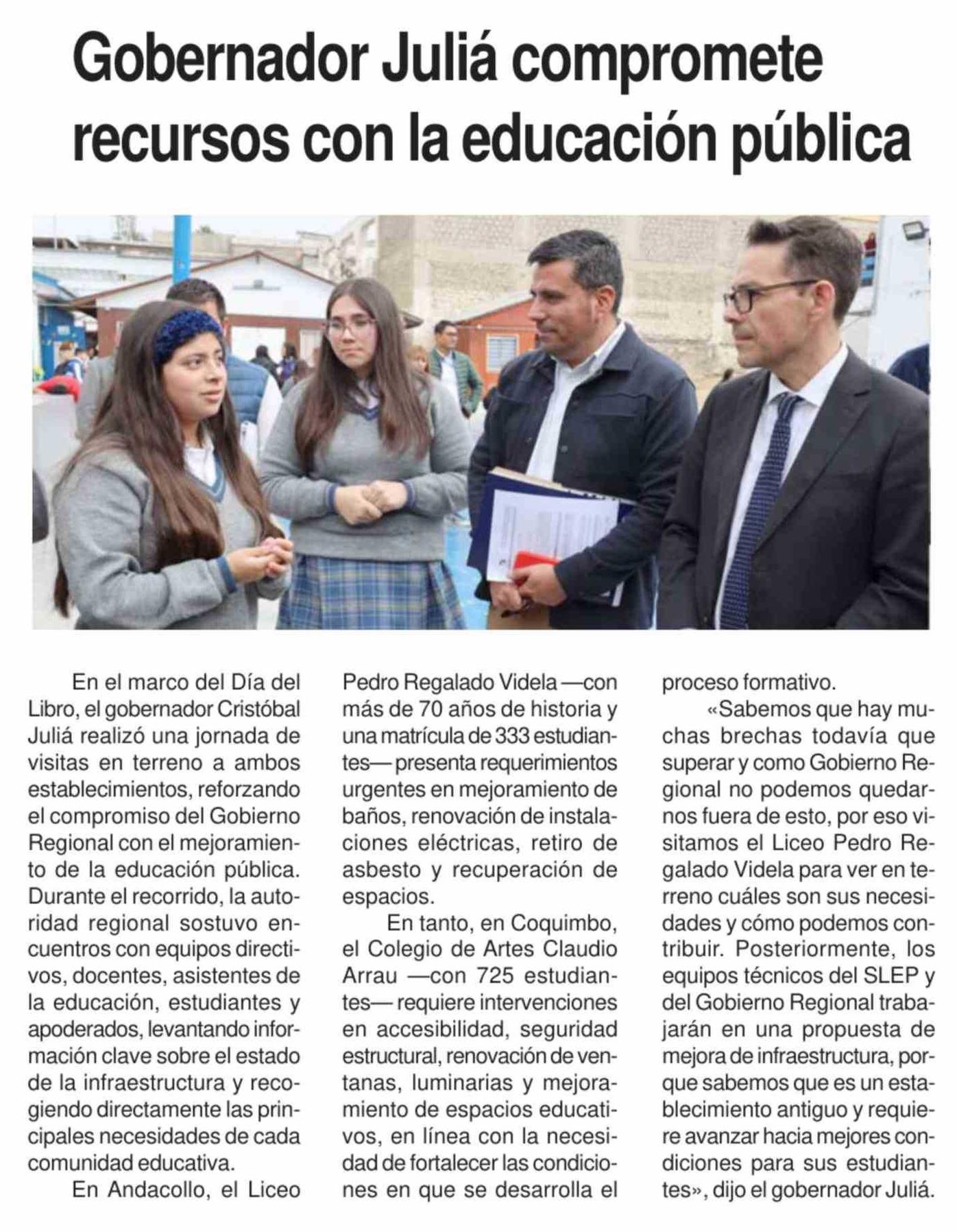 Gobernador Juliá compromete recursos con la educación pública 25-04-2026 Diario la Región |