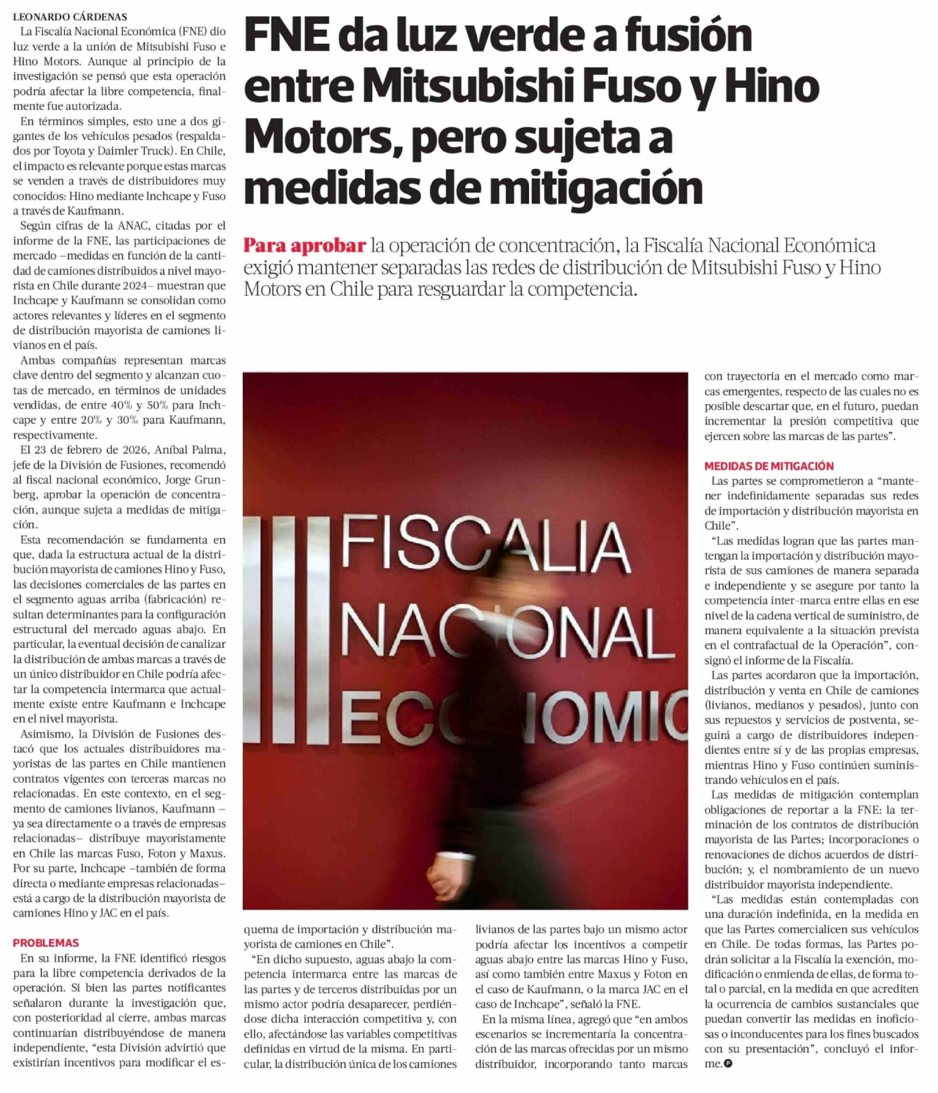 Título: FNE da luz verde a fusión entre Mitsubishi Fuso y Hino Motors, pero sujeta a medidas de mitigación