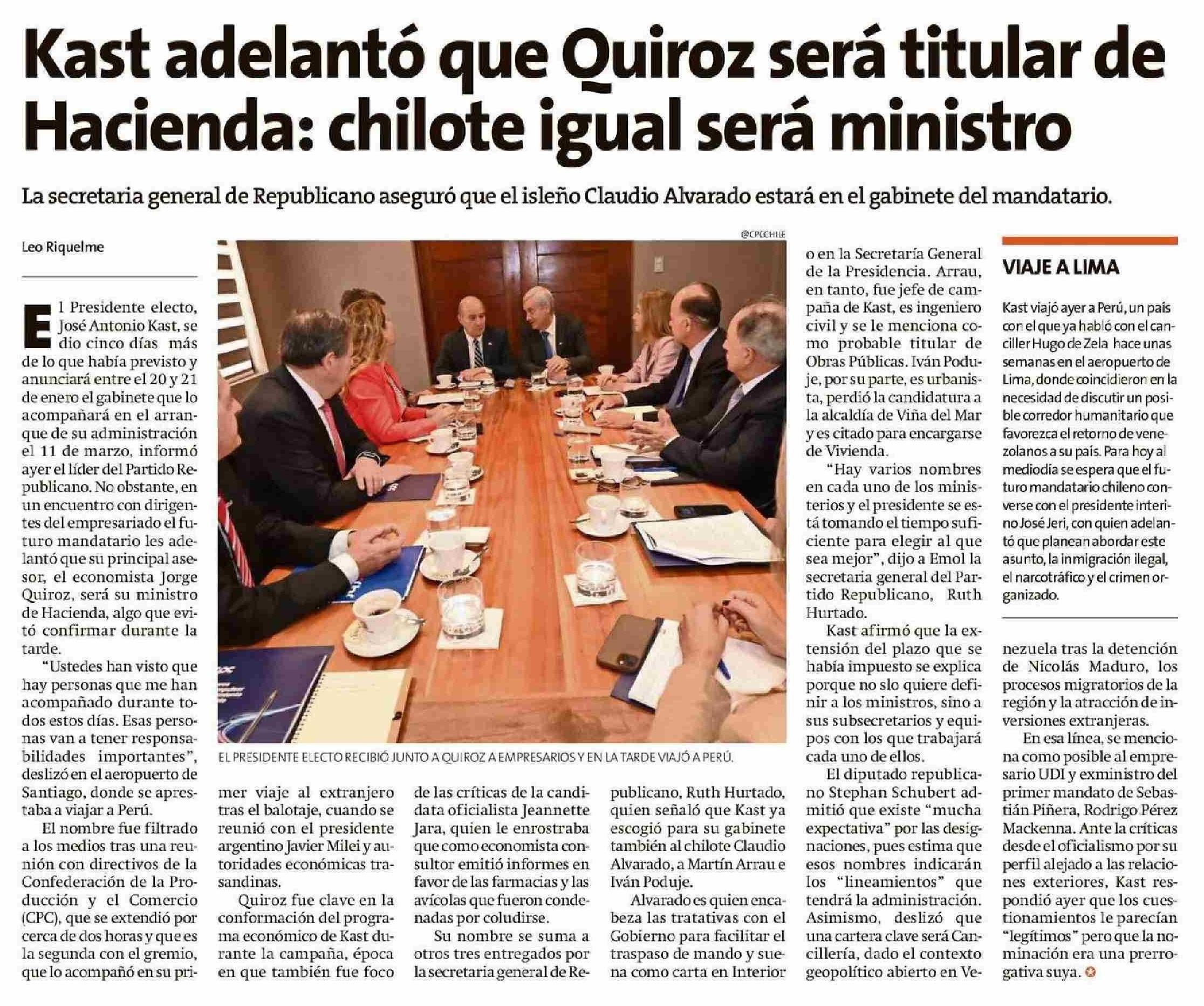 Kast adelantó que Quiroz será titular de Hacienda: chilote igual será ministro 07-01-2026 La Estrella de Chiloé |