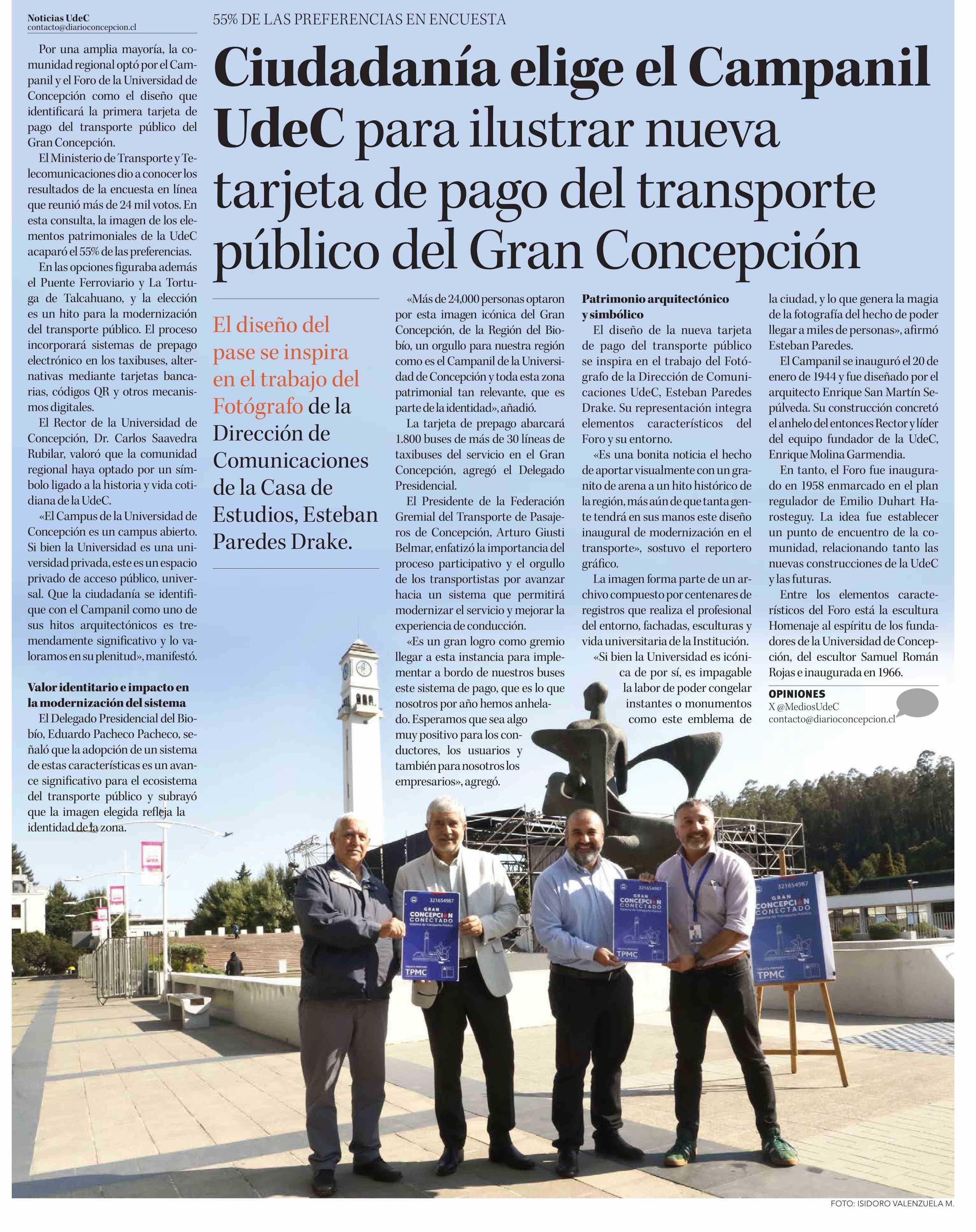 Título: Ciudadanía elige el Campanil UdeC para ilustrar nueva tarjeta de pago del transporte público del Gran Concepción