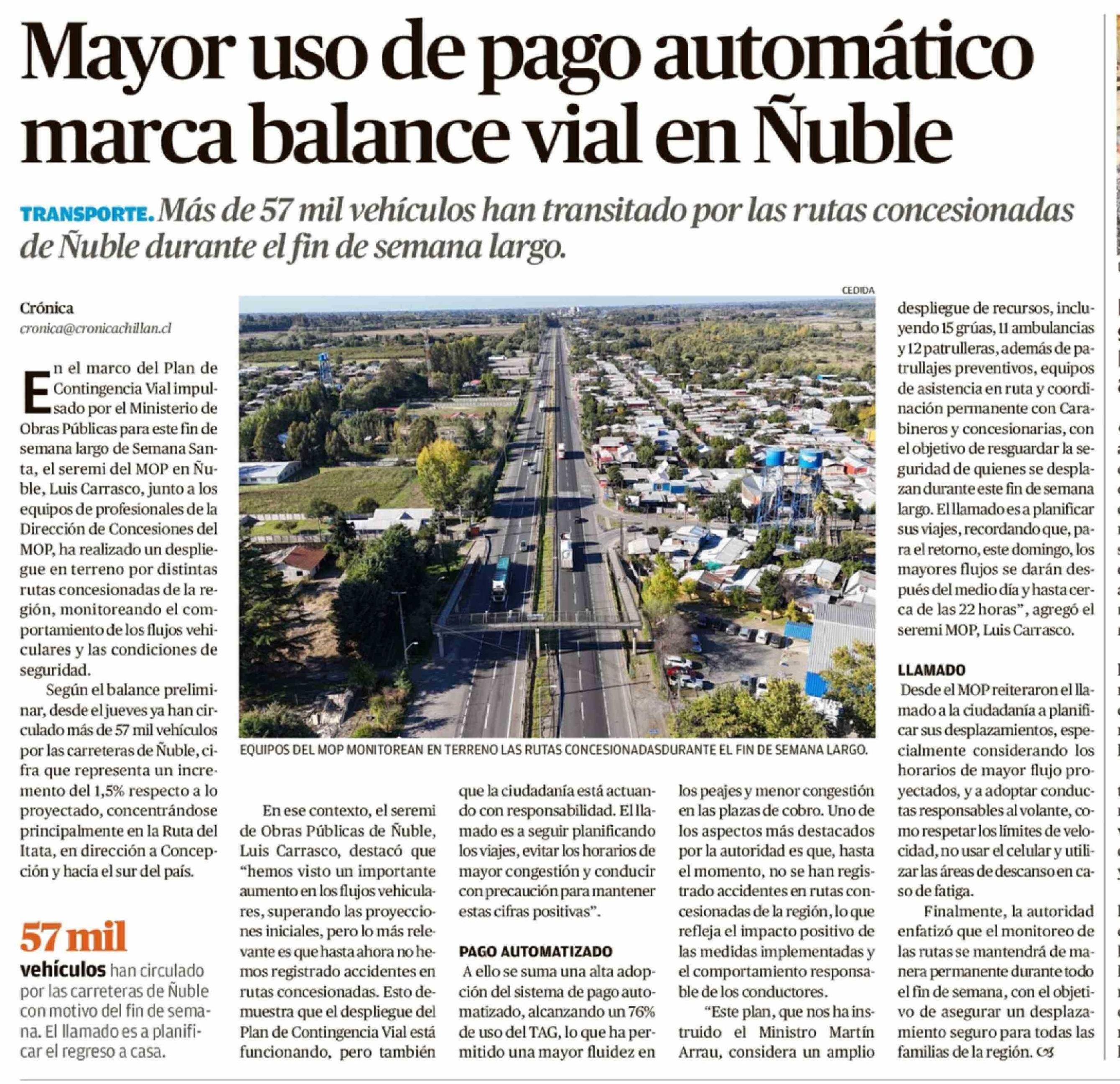 Mayor uso de pago automático marca balance vial en Nuble 05-04-2026 Crónica de Chillán |