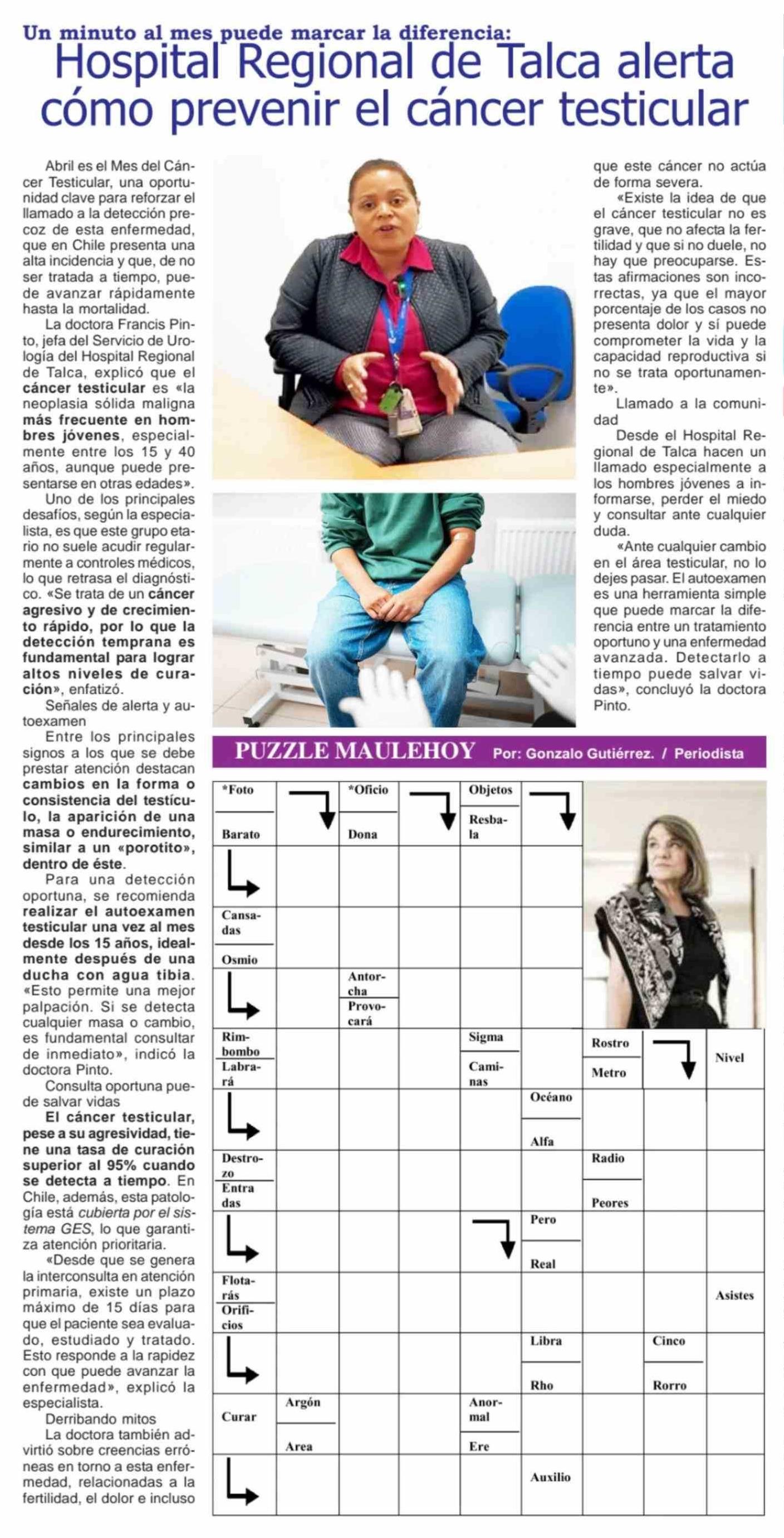 Título: Hospital Regional de Talca alerta cómo prevenir el cáncer testicular