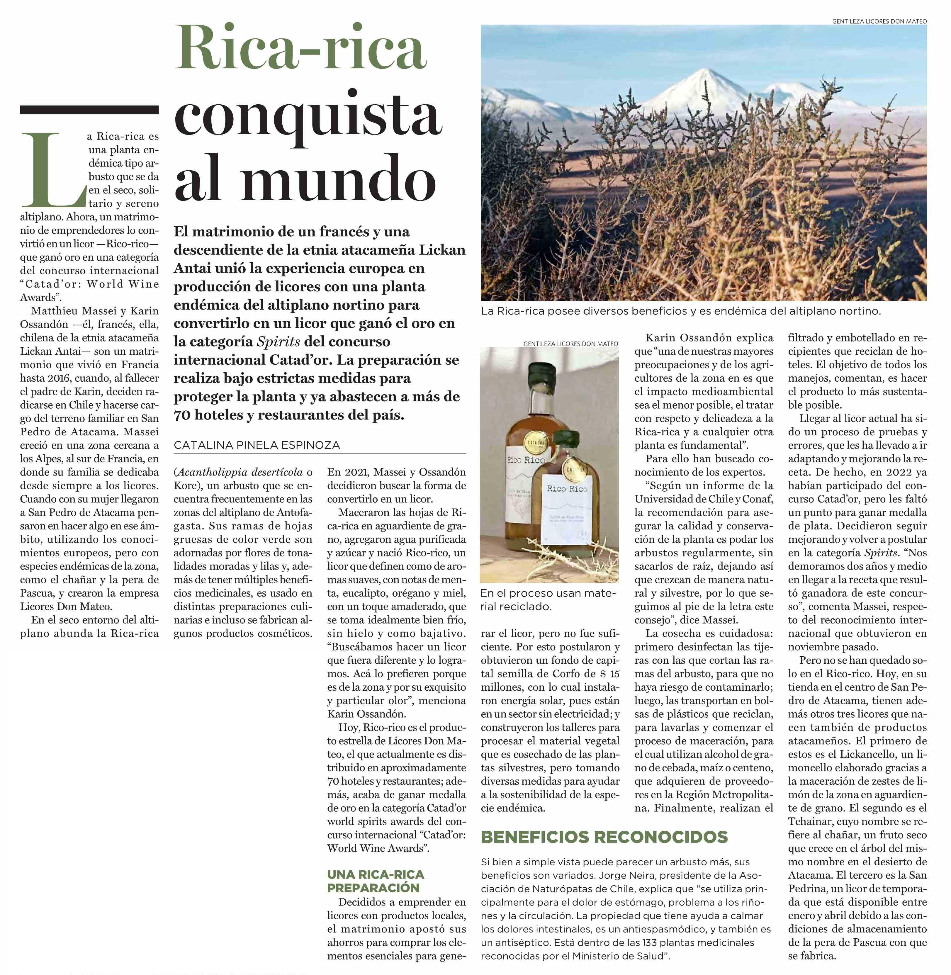 Rica-rica conquista al mundo 22-01-2024 El Mercurio |