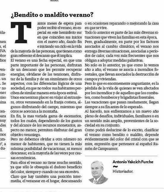 | Título: | Columnas de Opinión: ¿Bendito o maldito verano? |