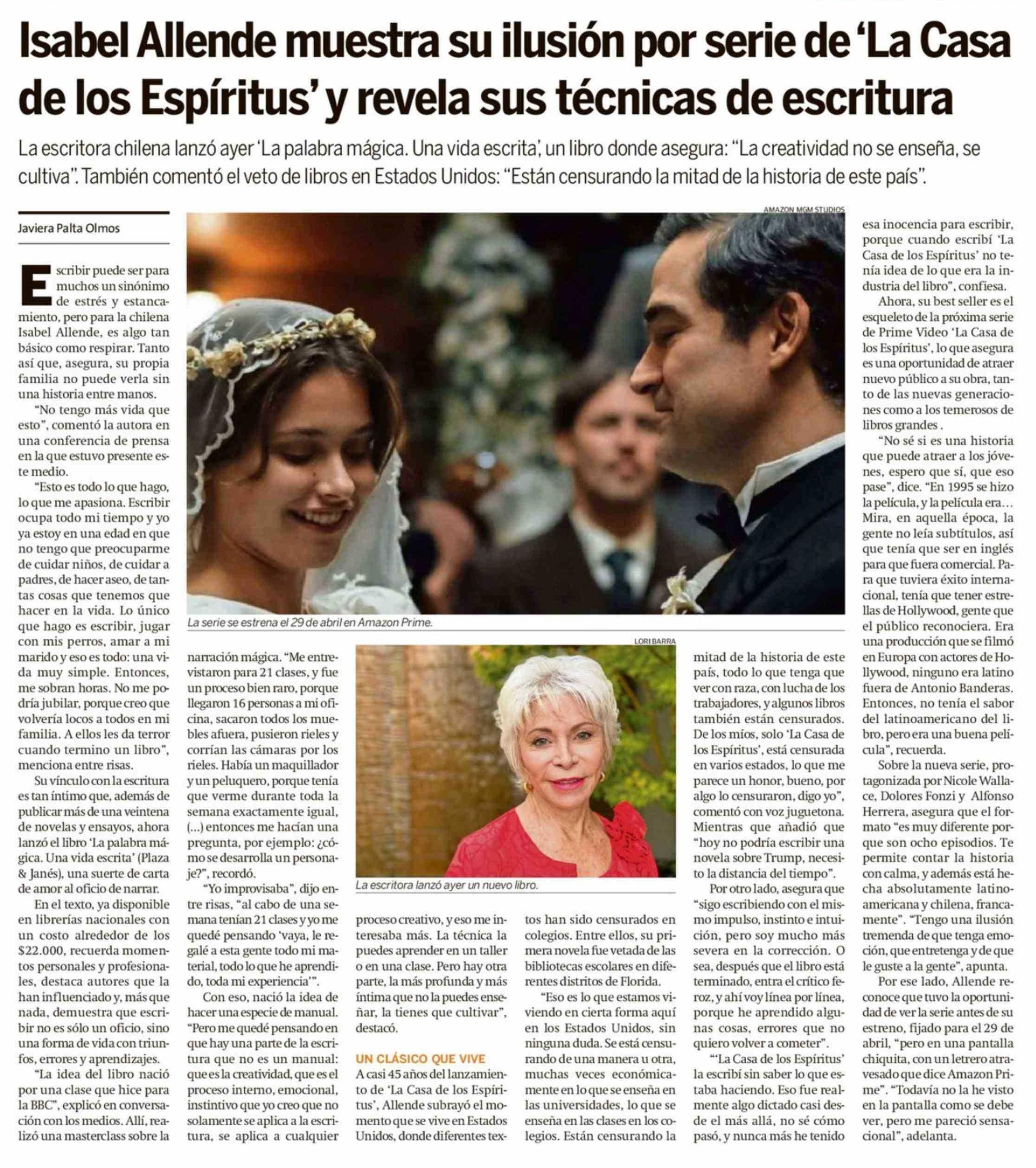 | Título: | Isabel Allende muestra su ilusión por serie de 'La Casa de los Espíritus' y revela sus técnicas de escritura |