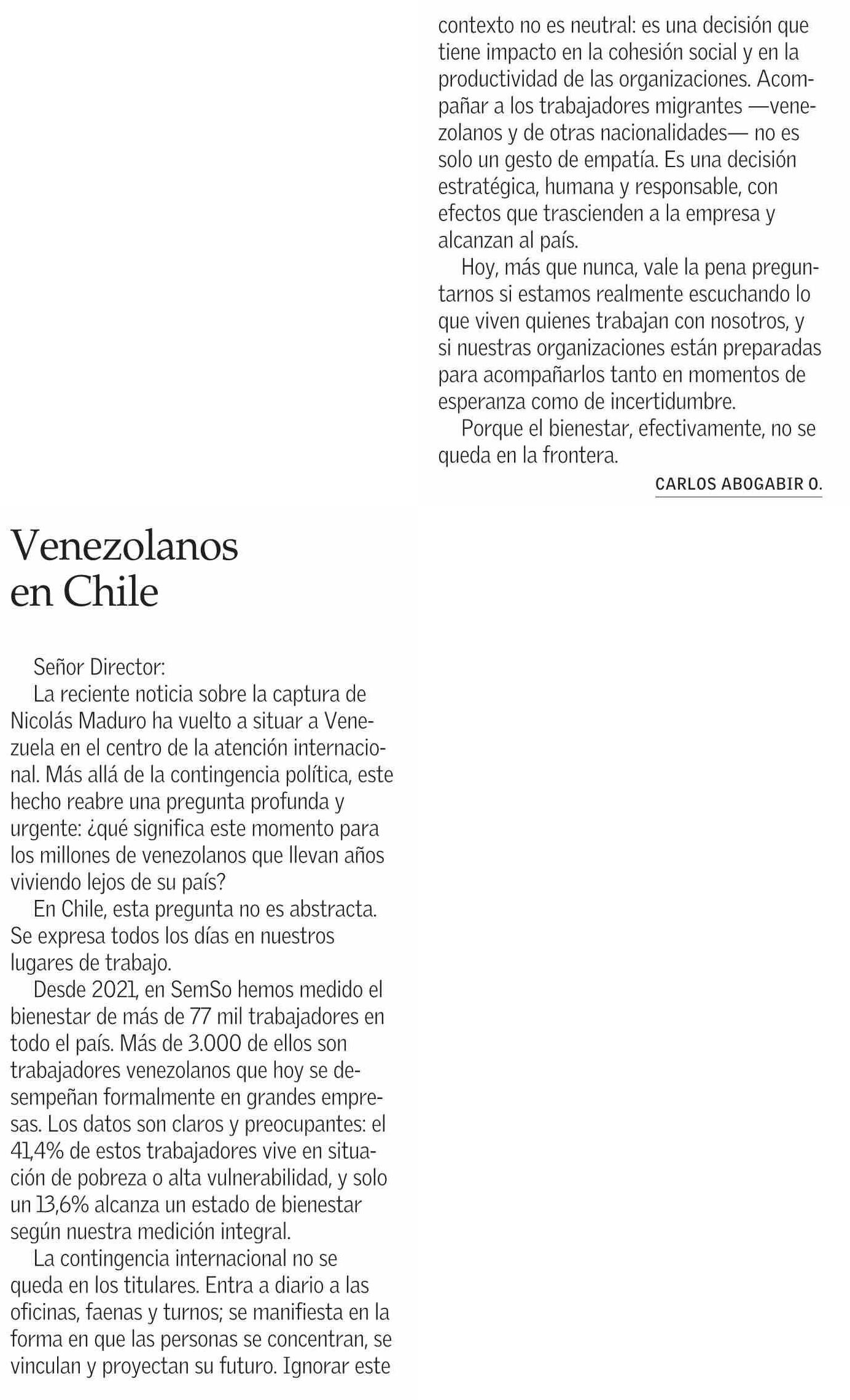 Cartas: Venezolanos en Chile 12-01-2026 El Mercurio |