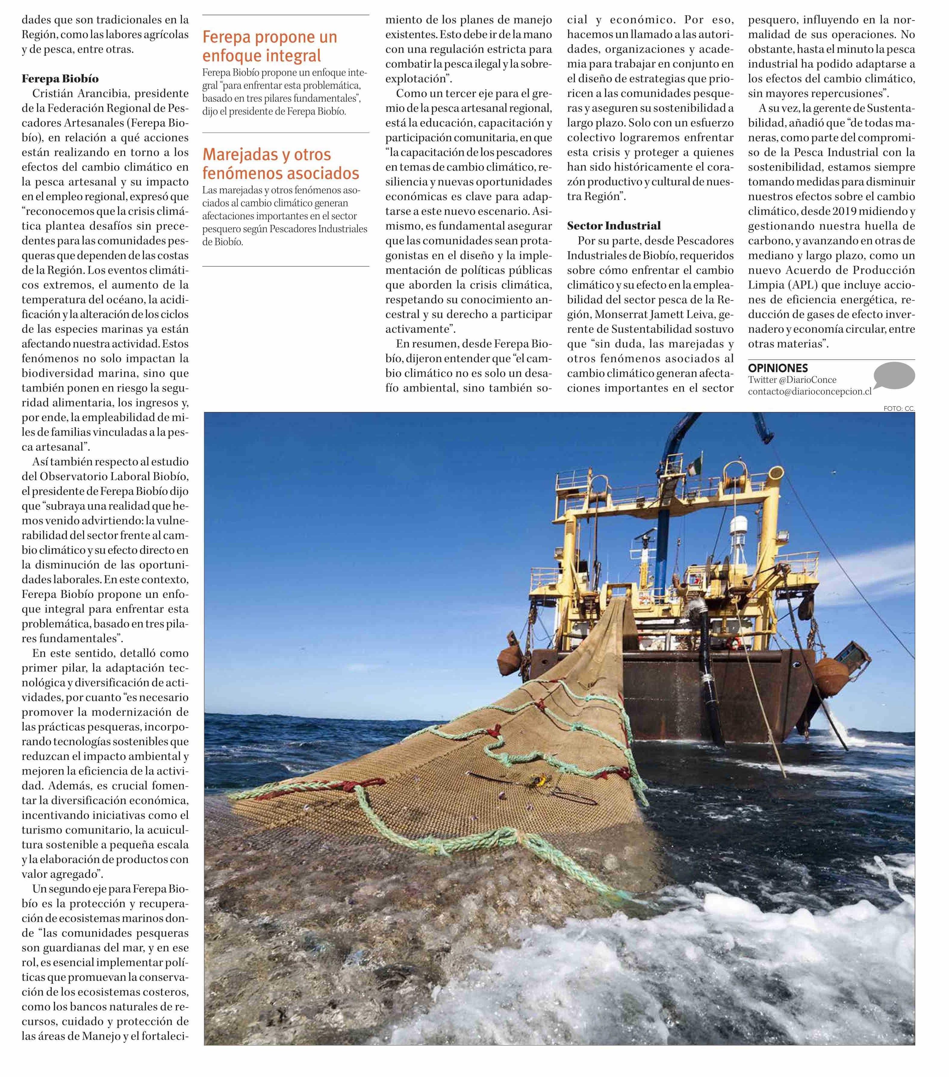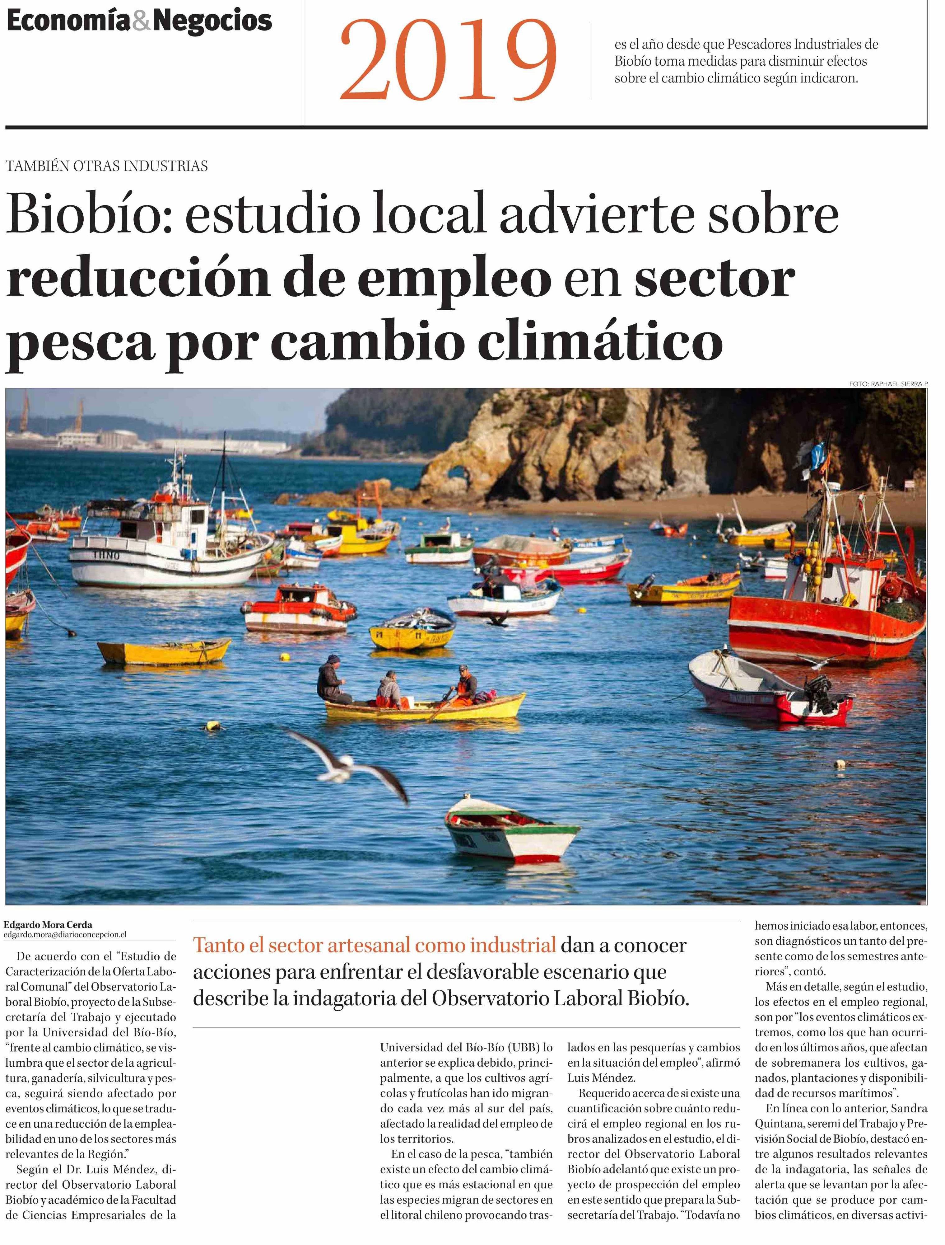 Biobío: estudio local advierte sobre reducción de empleo en sector pesca por cambio climático 30-01-2025 Diario Concepción |