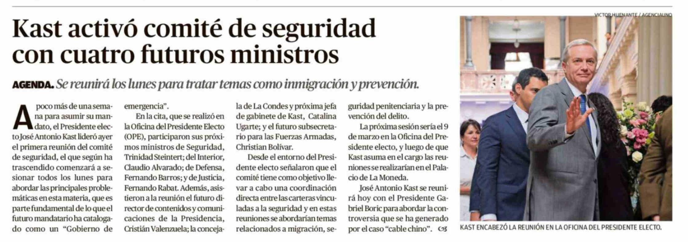 Título: Kast activó comité de seguridad con cuatro futuros ministros