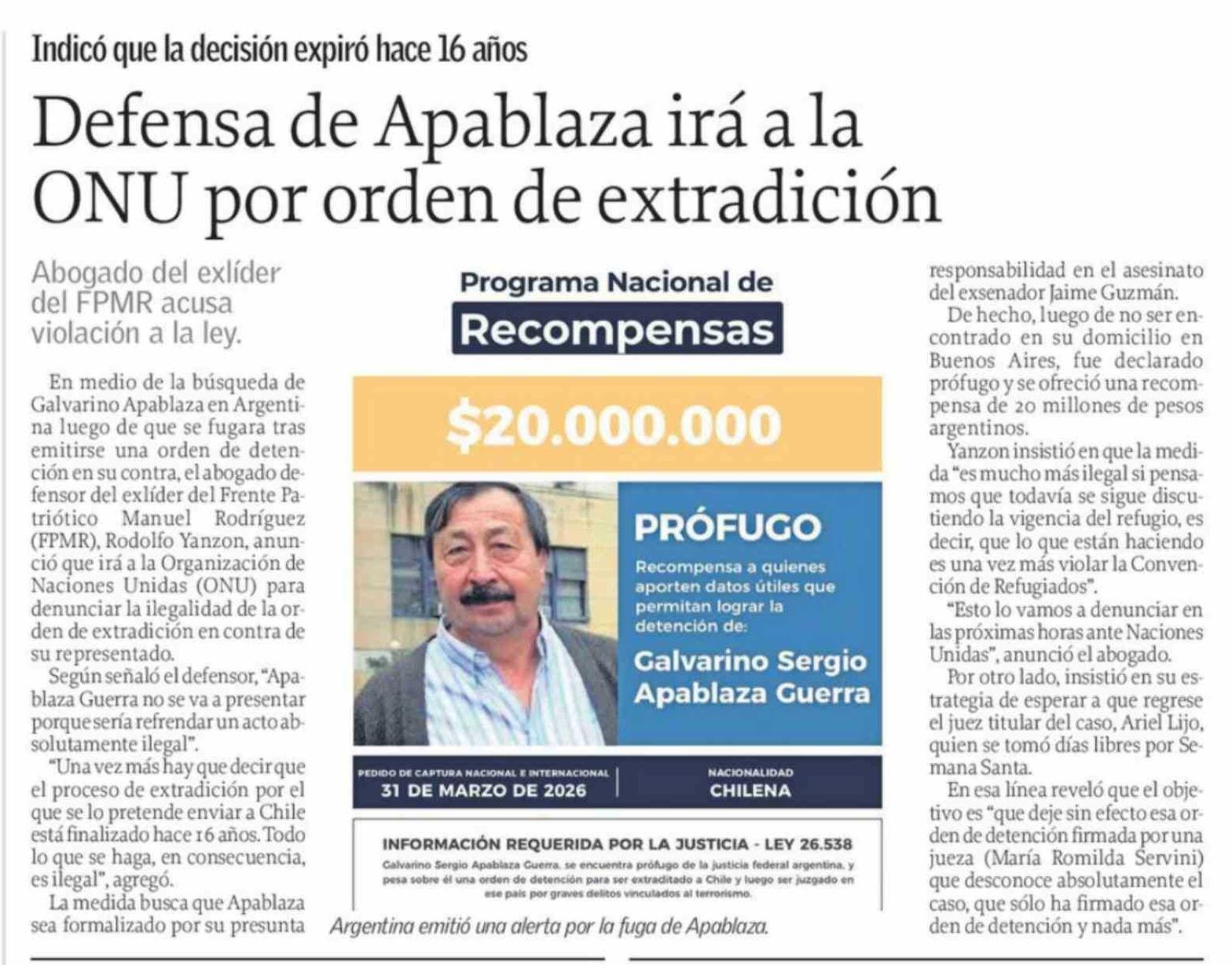 Título: Defensa de Apablaza irá a la ONU por orden de extradición