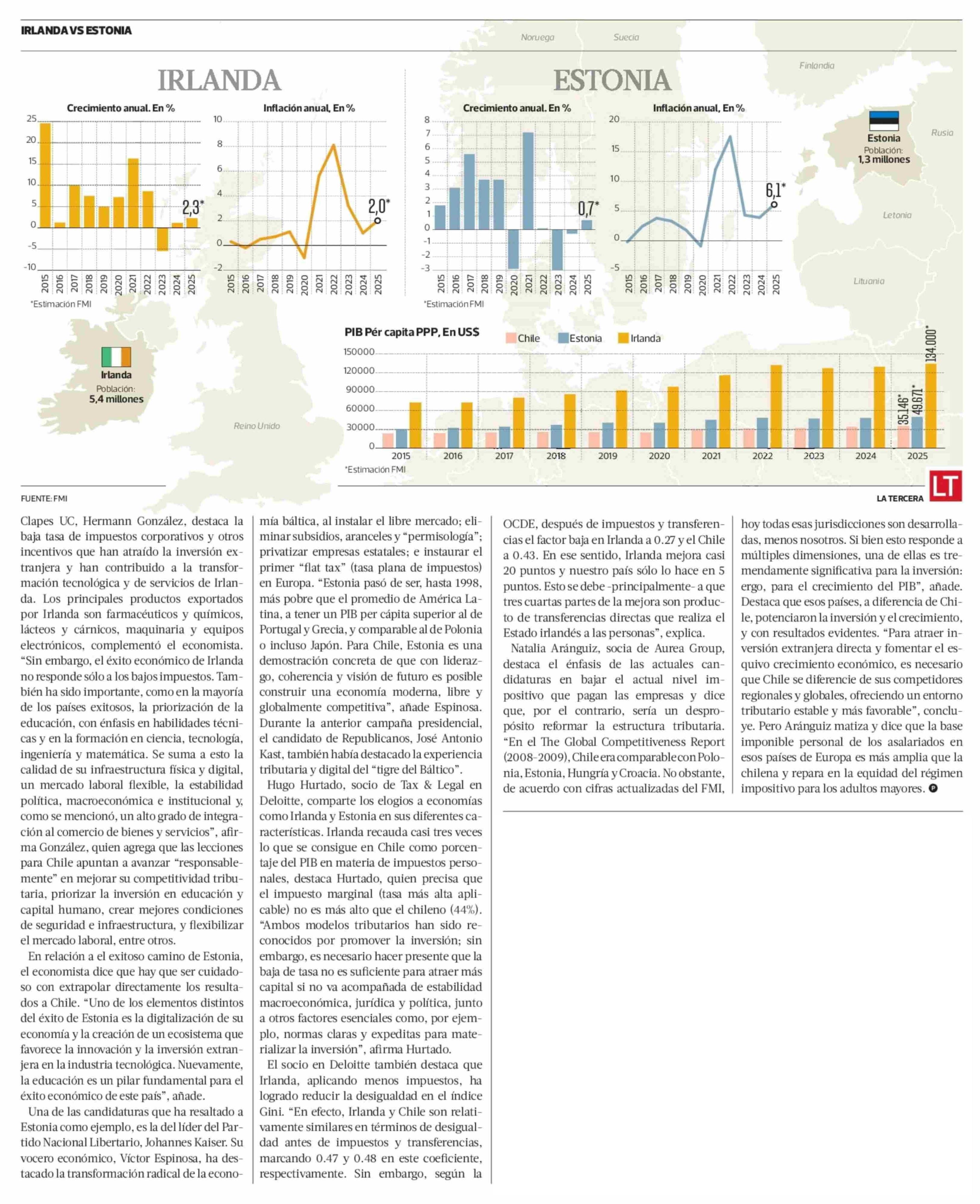 IRLANDA Y ESTONIA Los modelos económicos que atraen la mirada de los candidatos presidenciales 24-05-2025 La Tercera |