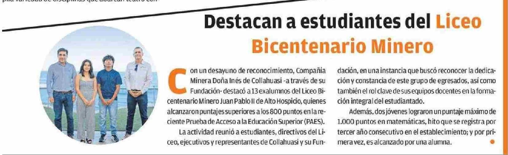 Título: Destacan a estudiantes del Liceo Bicentenario Minero