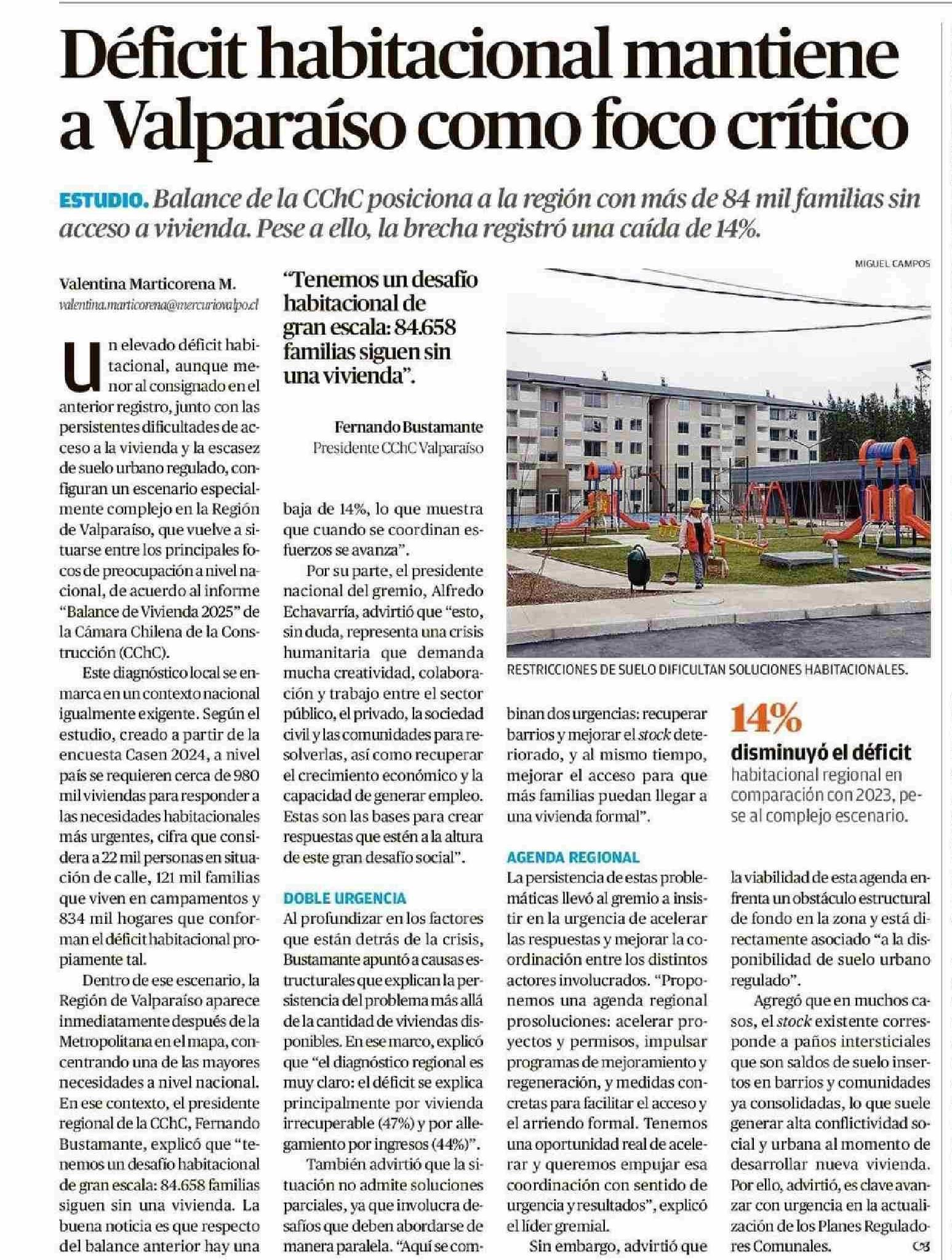 Déficit habitacional mantiene a Valparaíso como foco crítico 29-01-2026 El Mercurio de Valparaíso |