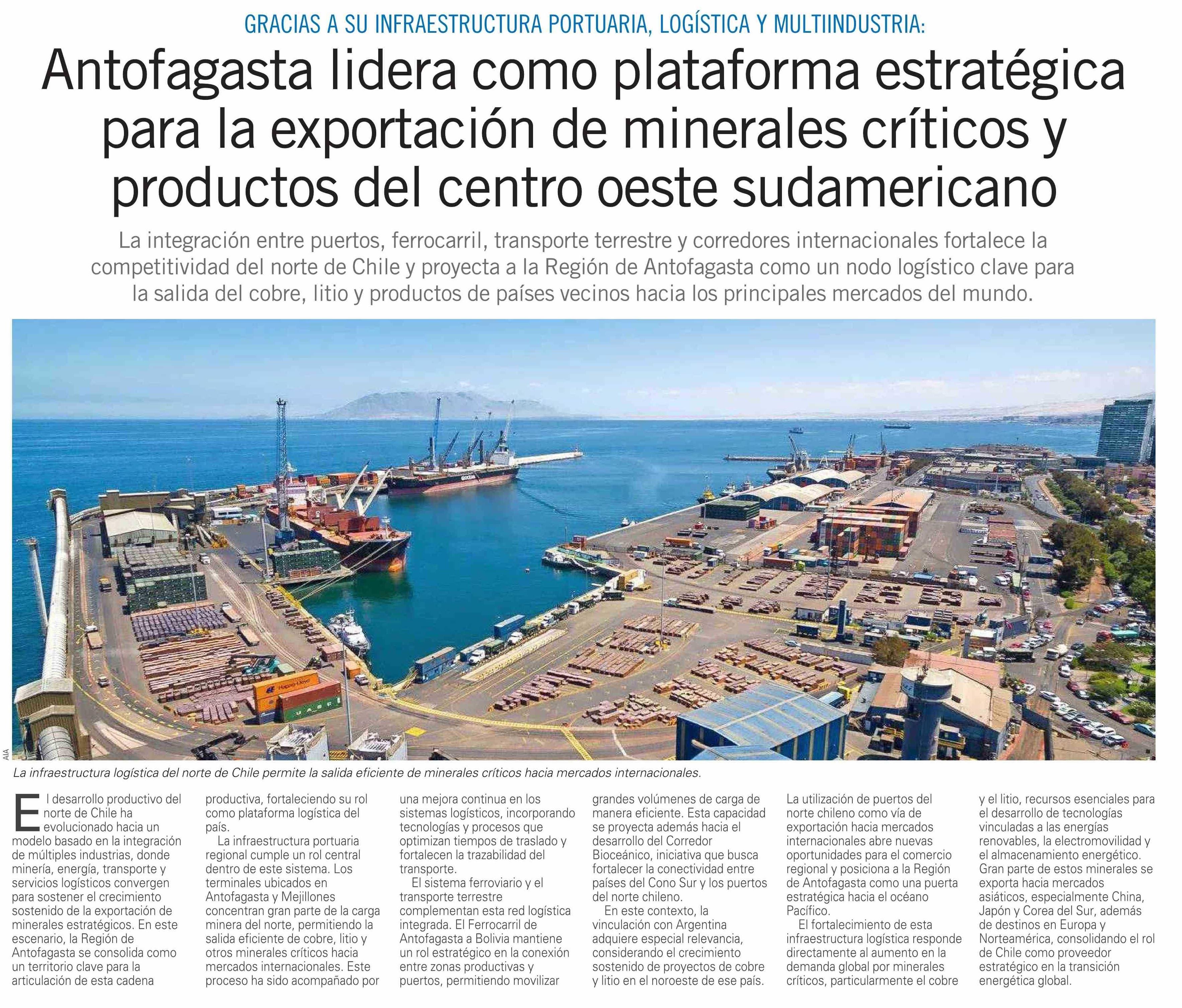 Título: Antofagasta lidera como plataforma estratégica para la exportación de minerales críticos y productos del centro oeste sudamericano
