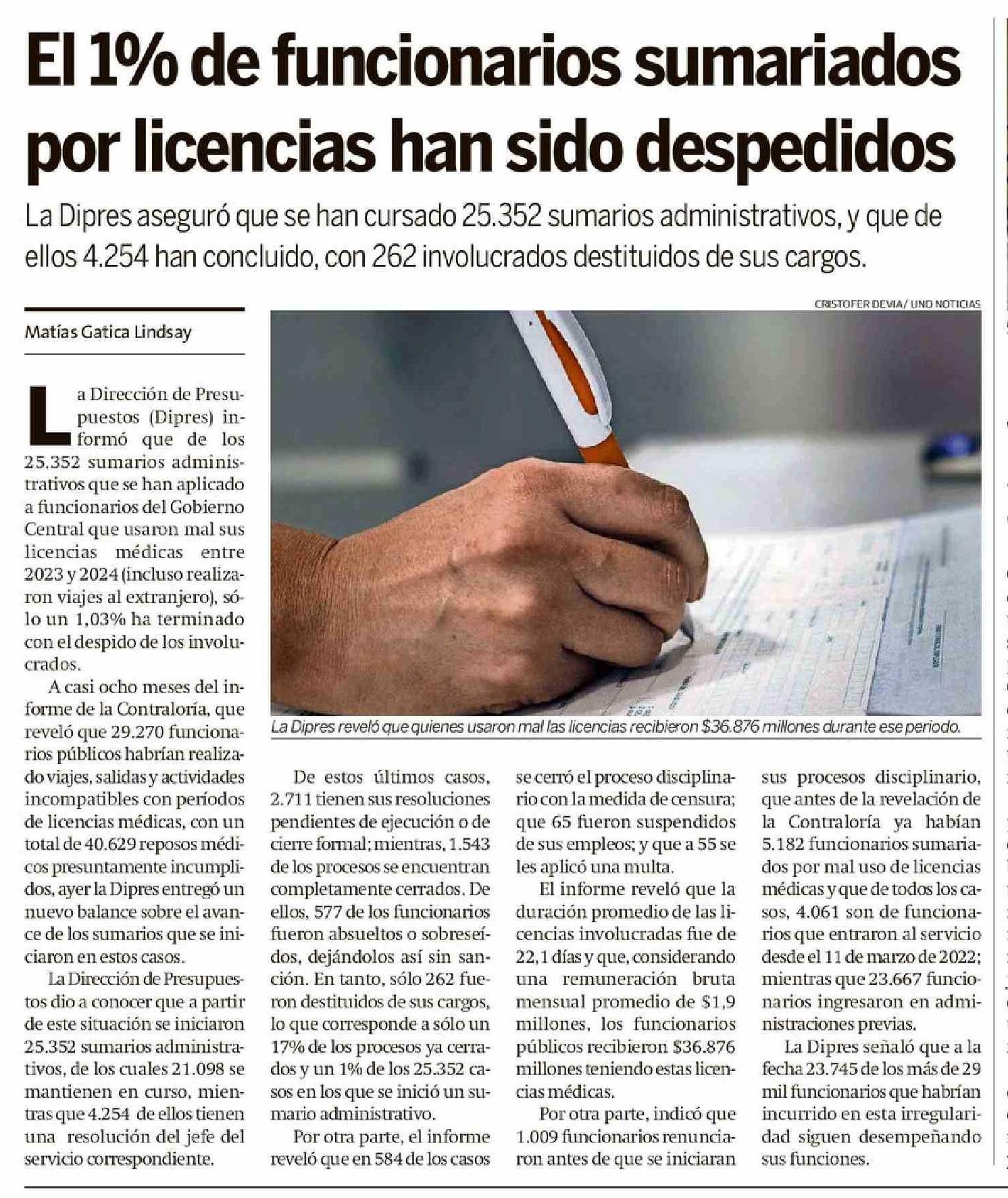 | Título: | El 1% de funcionarios sumariados por licencias han sido despedidos |