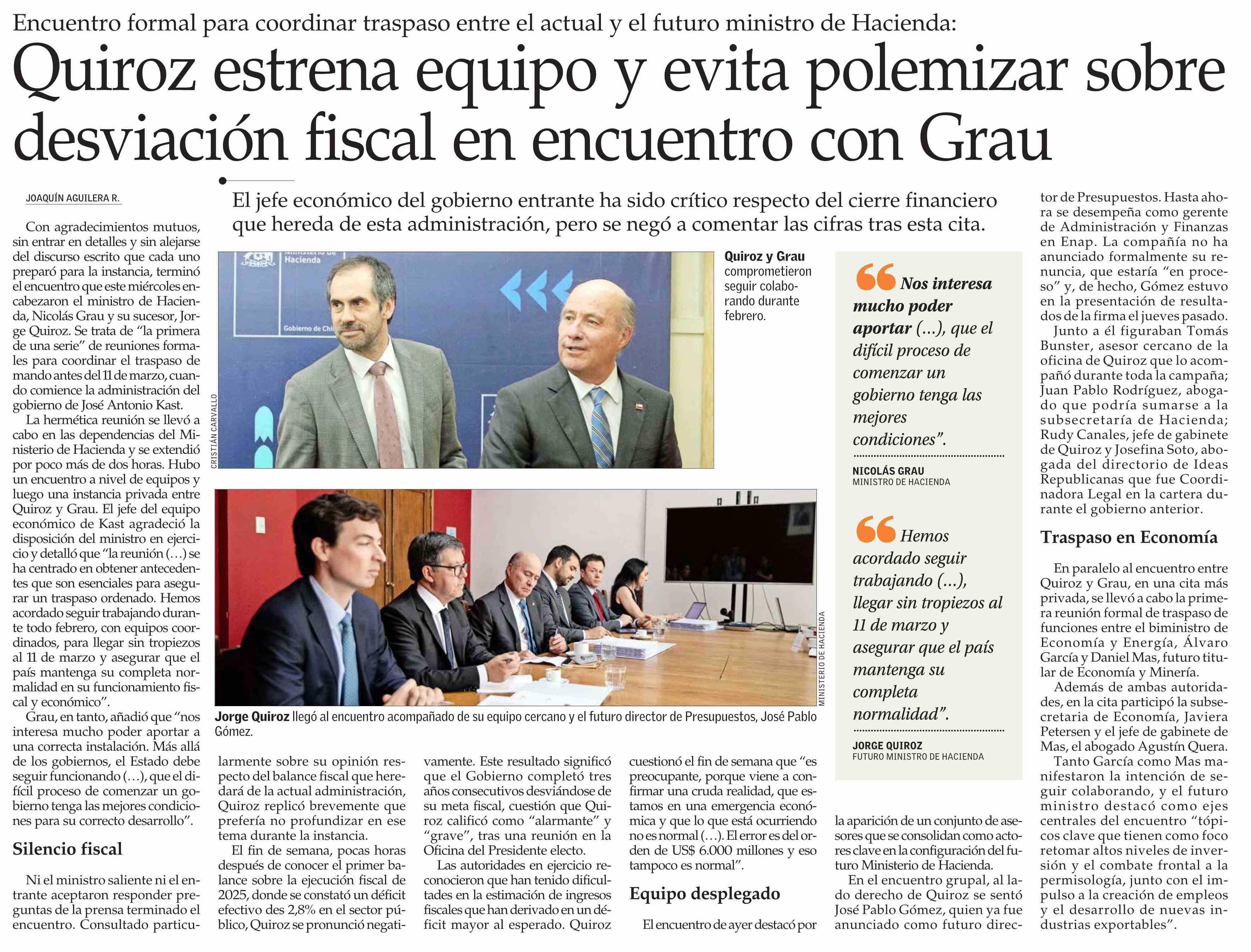 Título: Quiroz estrena equipo y evita polemizar sobre desviación fiscal en encuentro con Grau