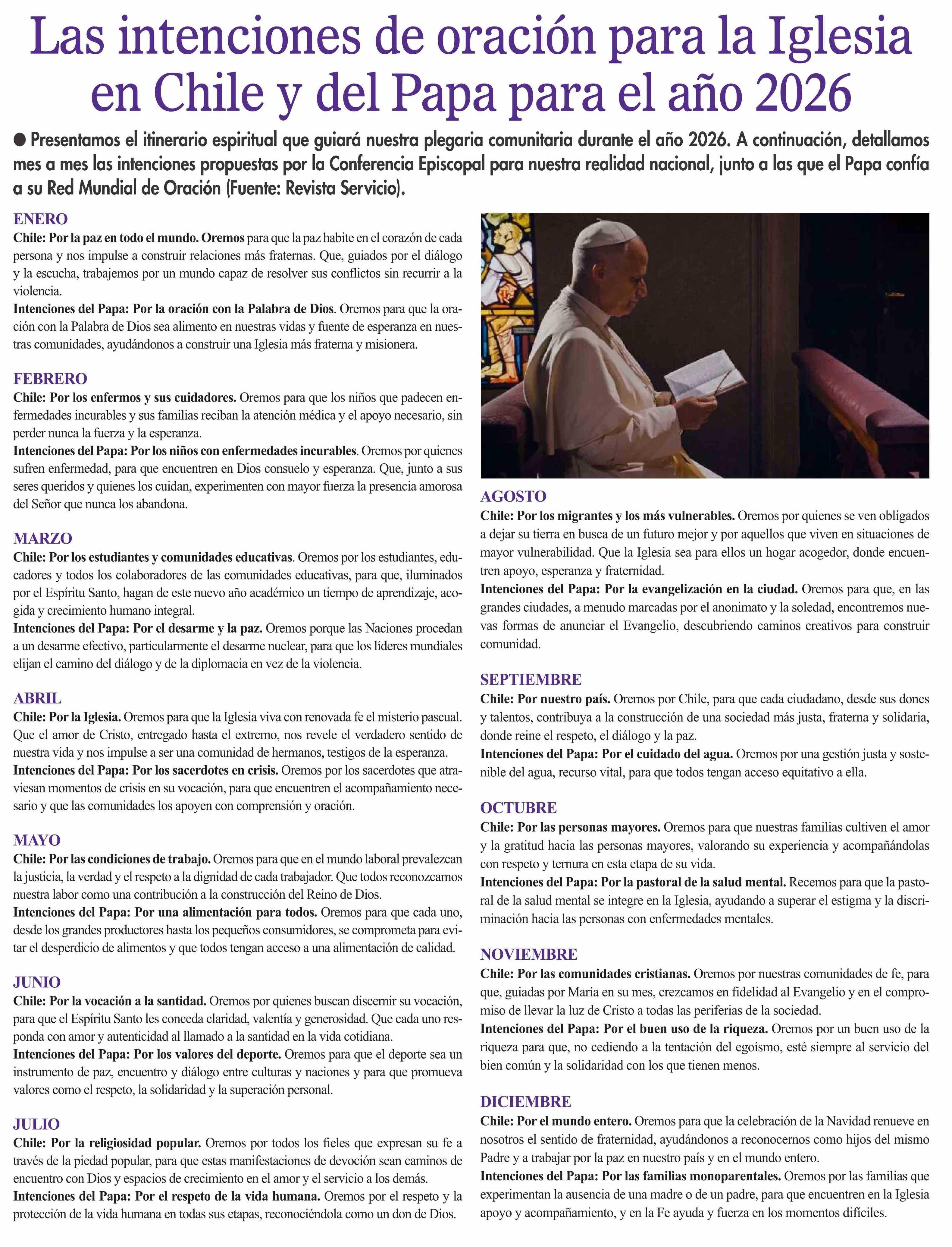 Las intenciones de oración para la Iglesia en Chile y del Papa para el año 2026 18-01-2026 El Pingüino |
