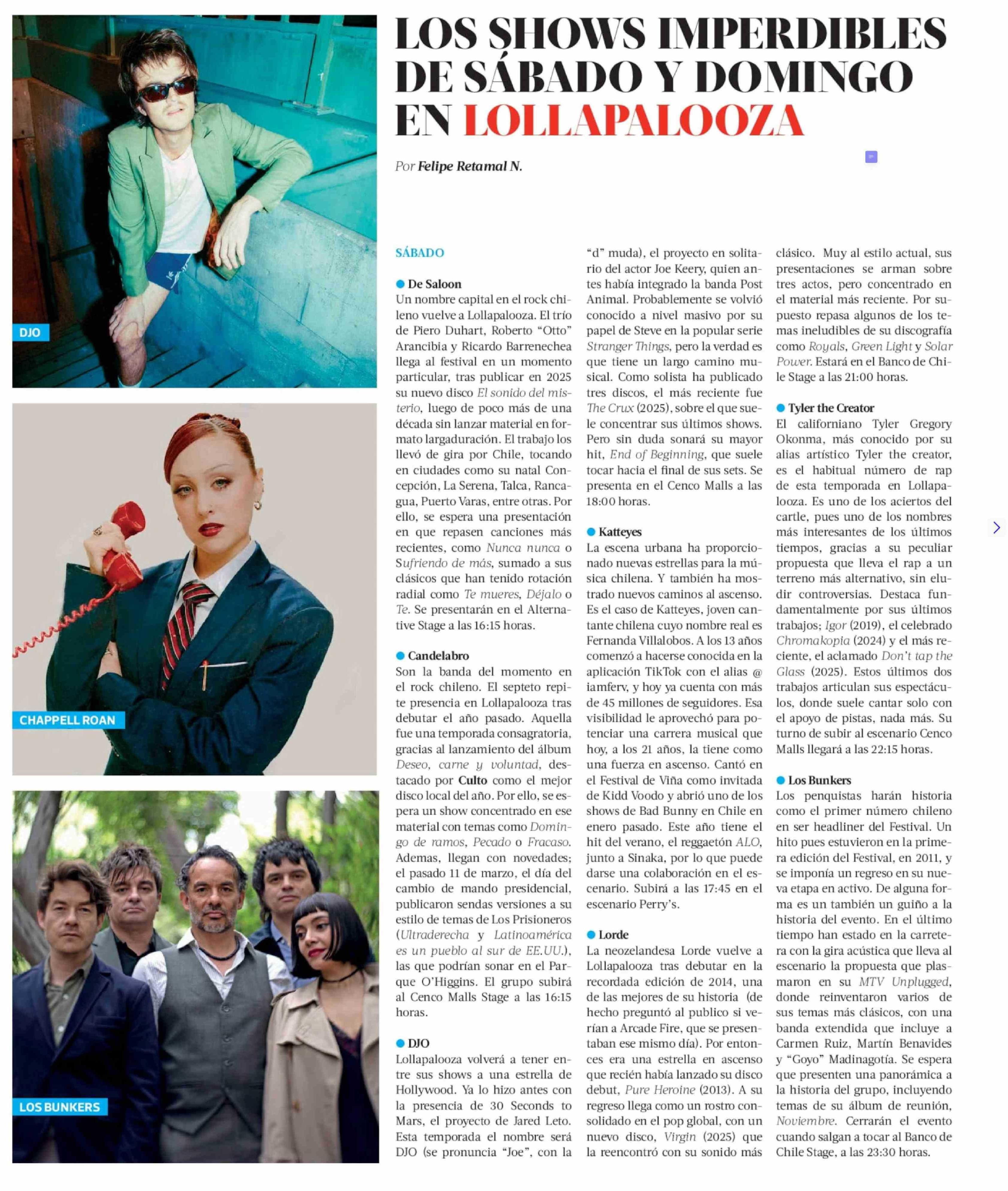 Título: LOS SHOWS IMPERDIBLES DE SÁBADO Y DOMINGO EN LOLLAPALOOZA