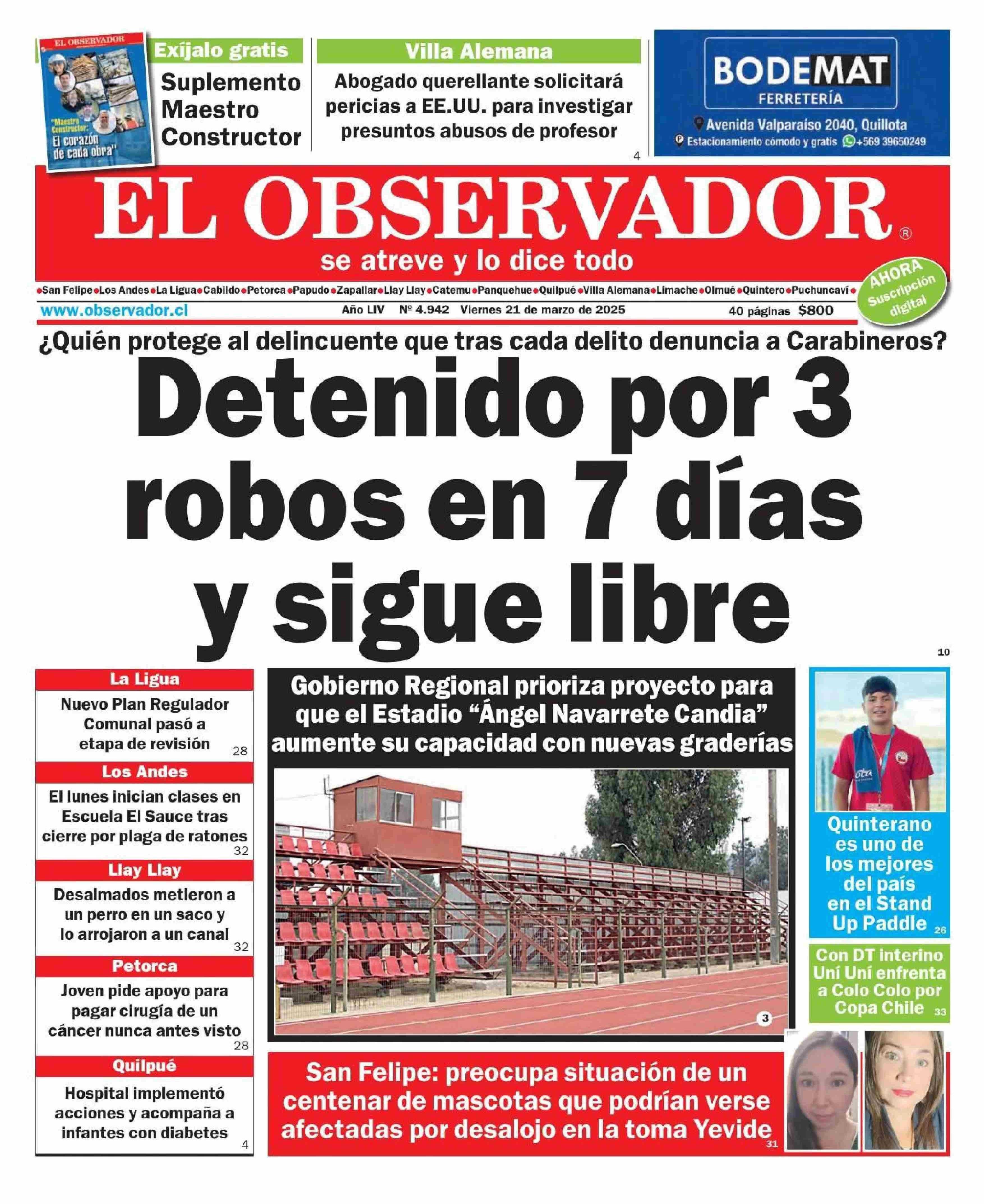 Detenido por 3 robos en 7 días y sigue libre 21-03-2025 El Observador |