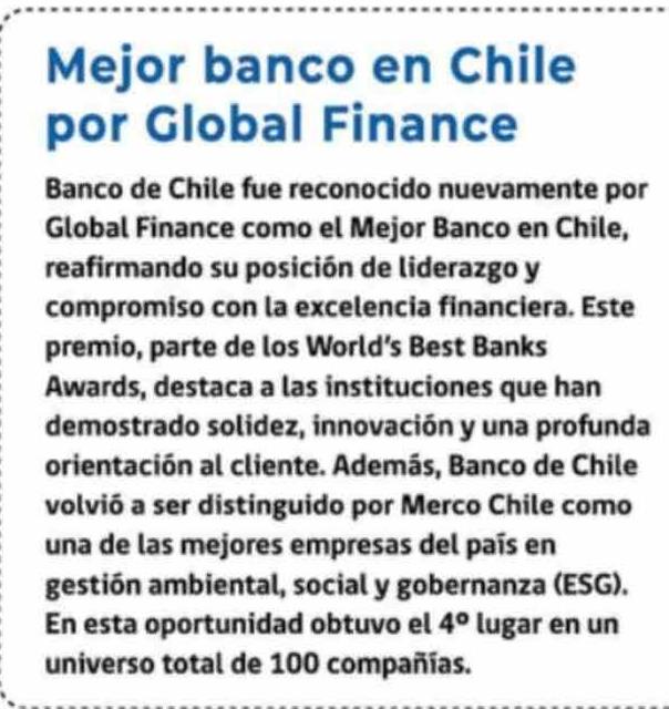 Mejor banco en Chile por Global Finance 26-03-2026 Las Últimas Noticias |