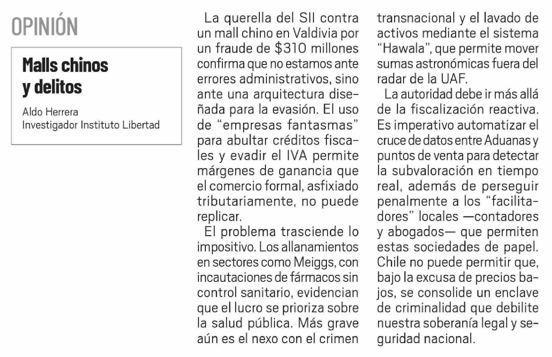 Columnas de Opinión: Malls chinos 15-02-2026 El Día |