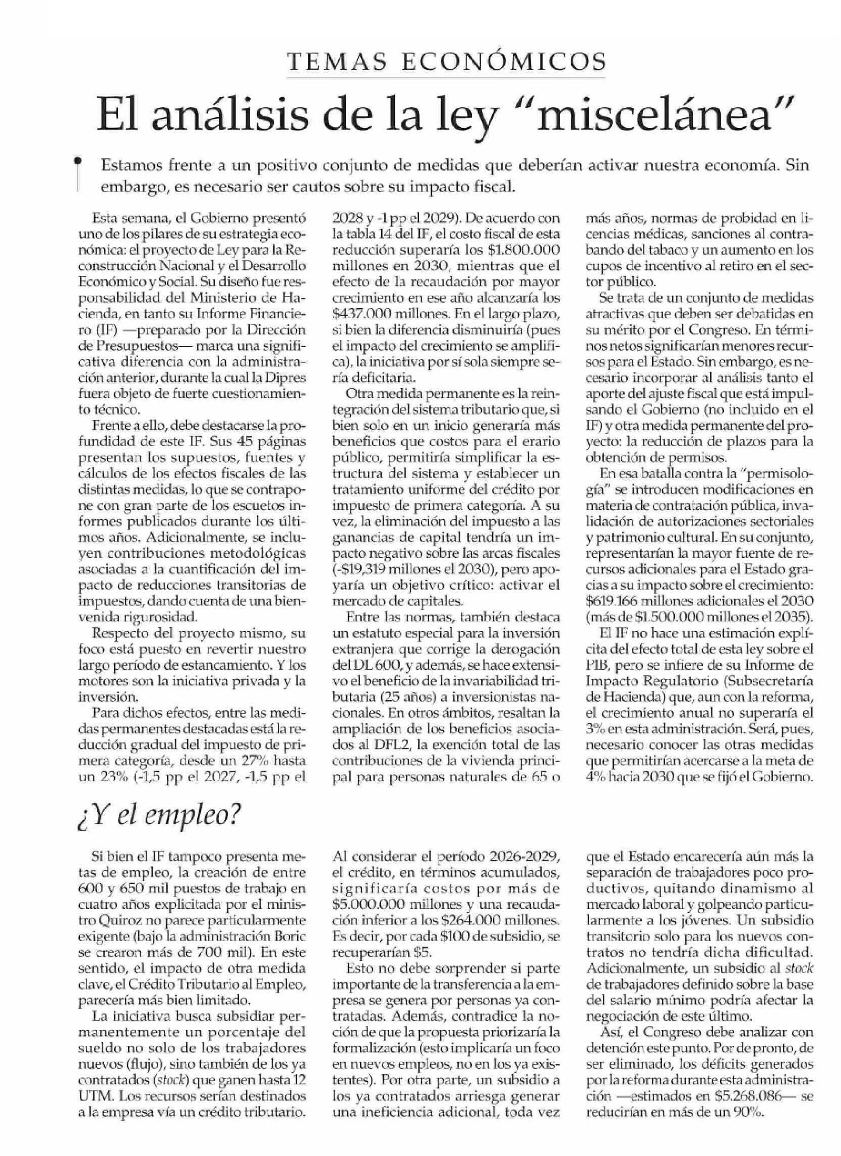 Título: EDITORIAL: El análisis de la ley "miscelánea"