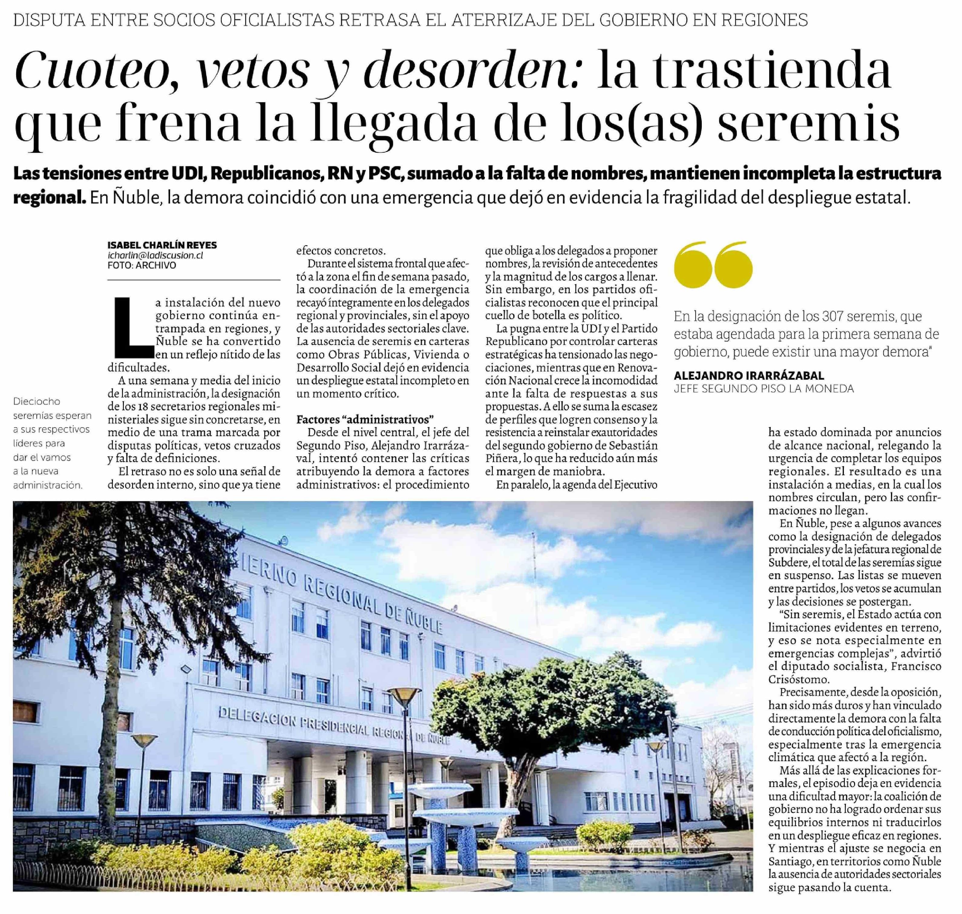 Título: Cuoteo, vetos y desorden: la trastienda que frena la llegada de los(as) seremis