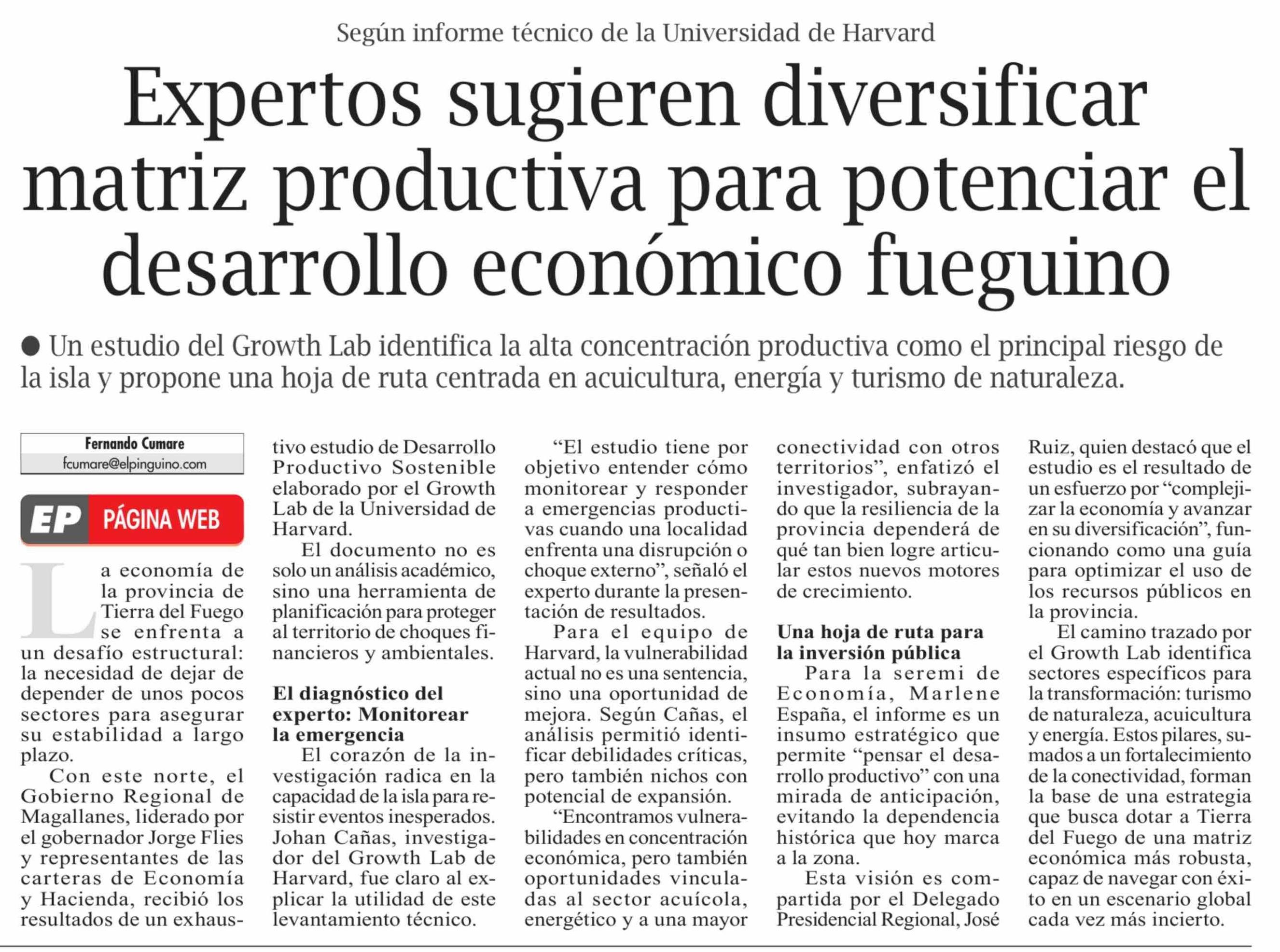 Expertos sugieren diversificar matriz productiva para potenciar el desarrollo económico fueguino 03-03-2026 El Pingüino |