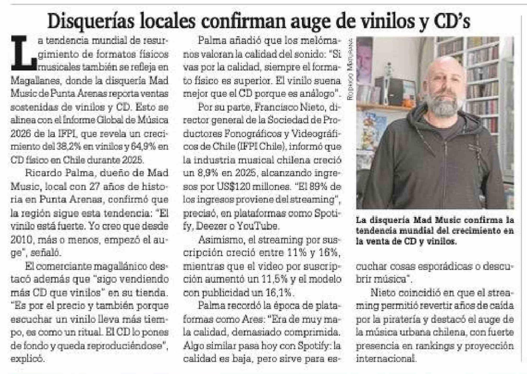 Disquerías locales confirman auge de vinilos y CD's 23-03-2026 La Prensa Austral |