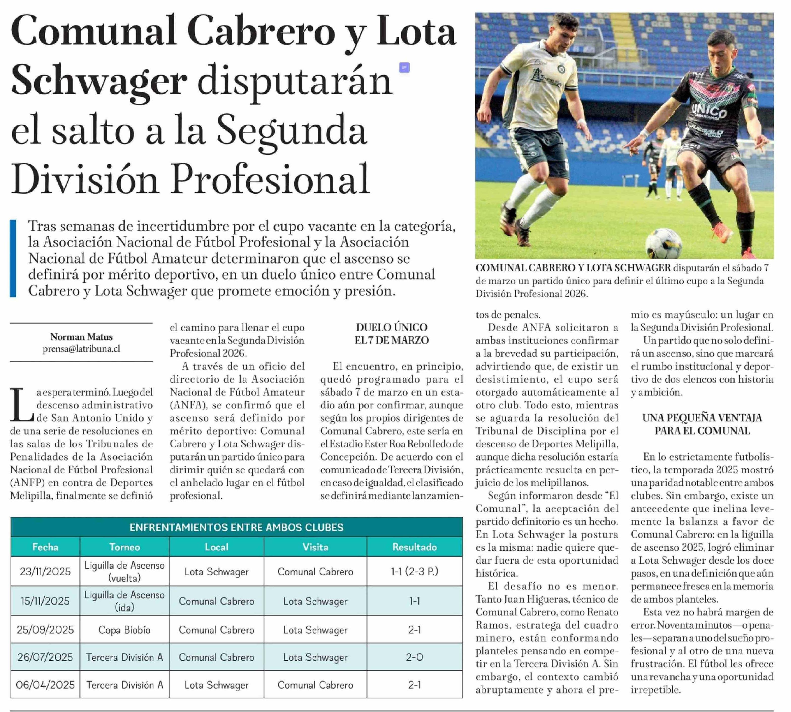 Título: Comunal Cabrero y Lota Schwager disputarán el salto a la Segunda División Profesional