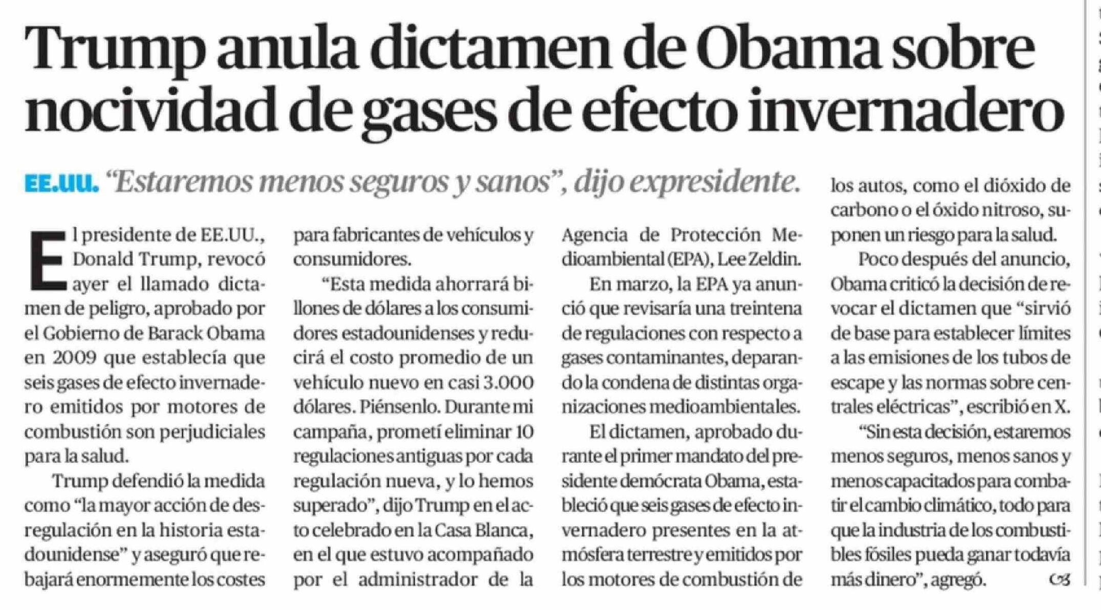 Trump anula dictamen de Obama sobre nocividad de gases de efecto invernadero 13-02-2026 El Diario de Atacama |