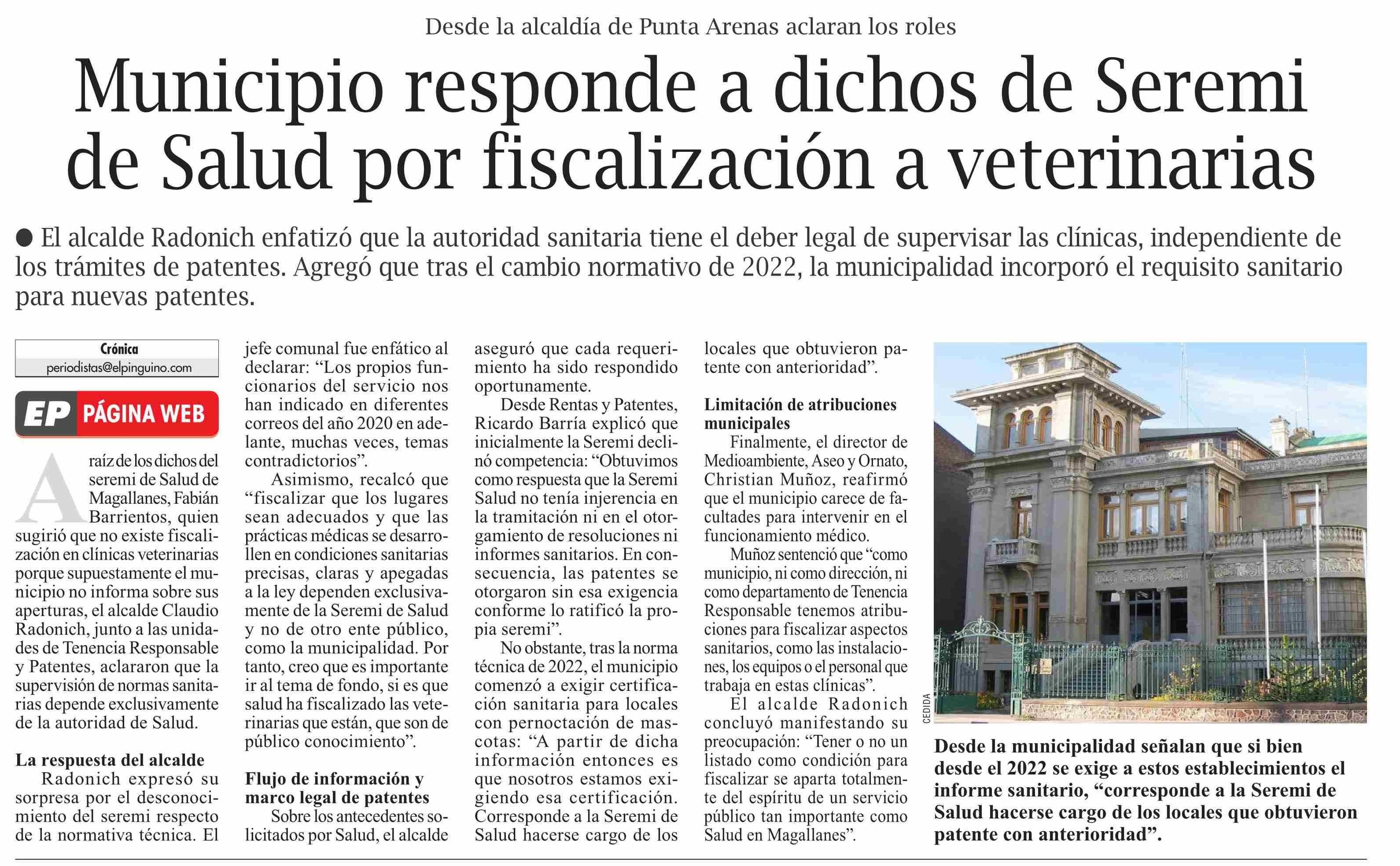 Municipio responde a dichos de Seremi de Salud por fiscalización a veterinarias 23-04-2026 El Pingüino |