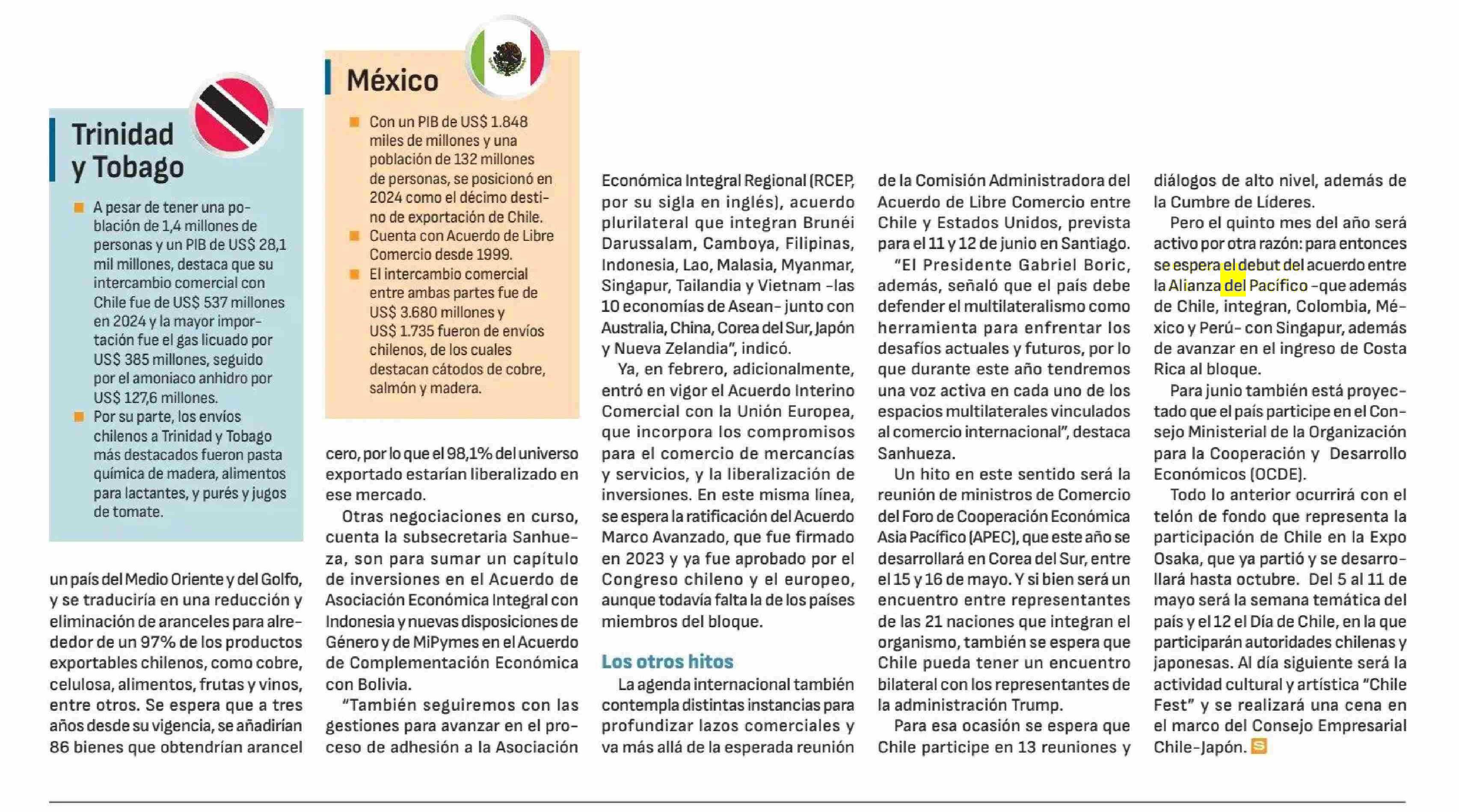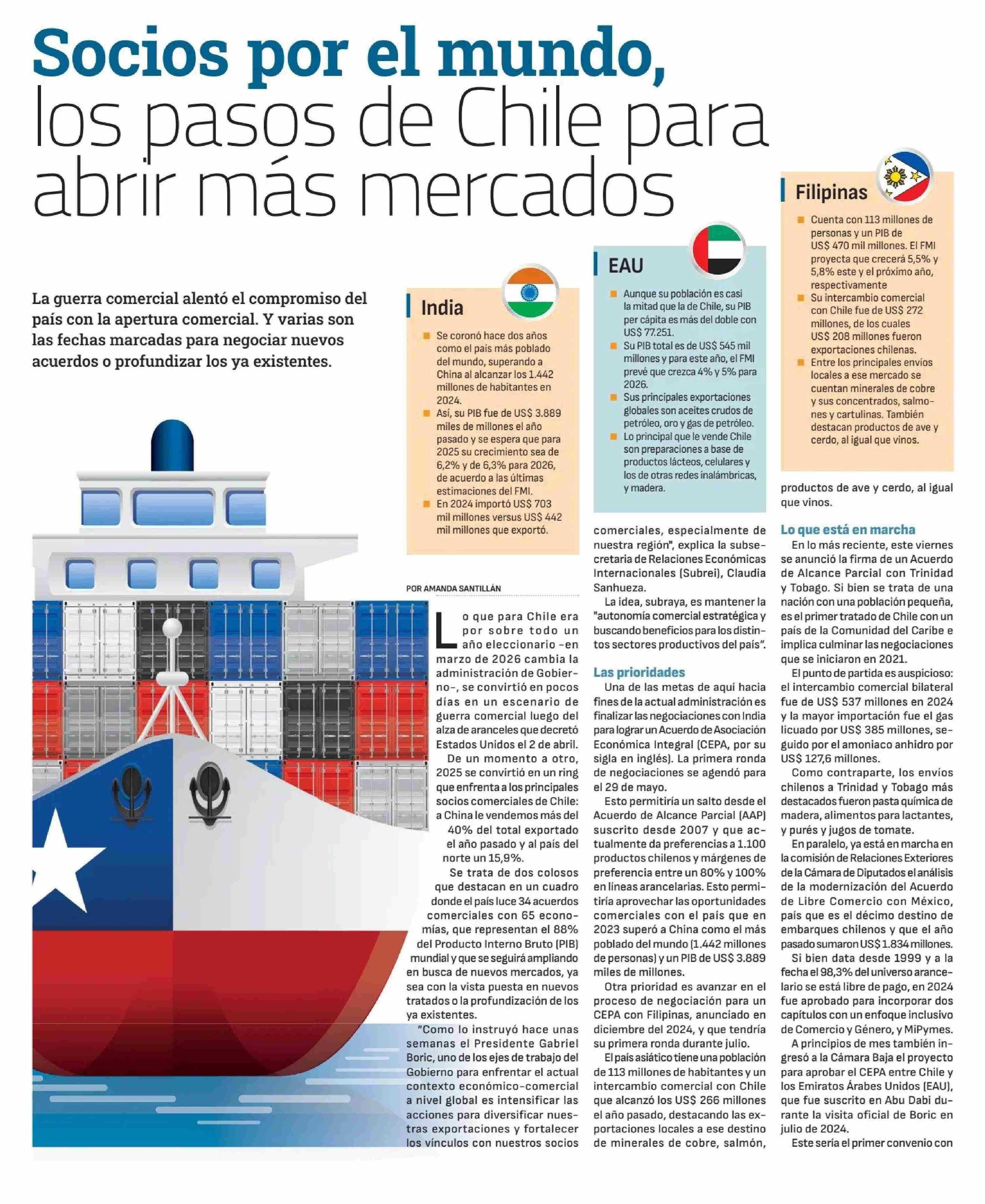 Socios por el mundo, los pasos de Chile para abrir más mercados 26-04-2025 Diario Financiero |