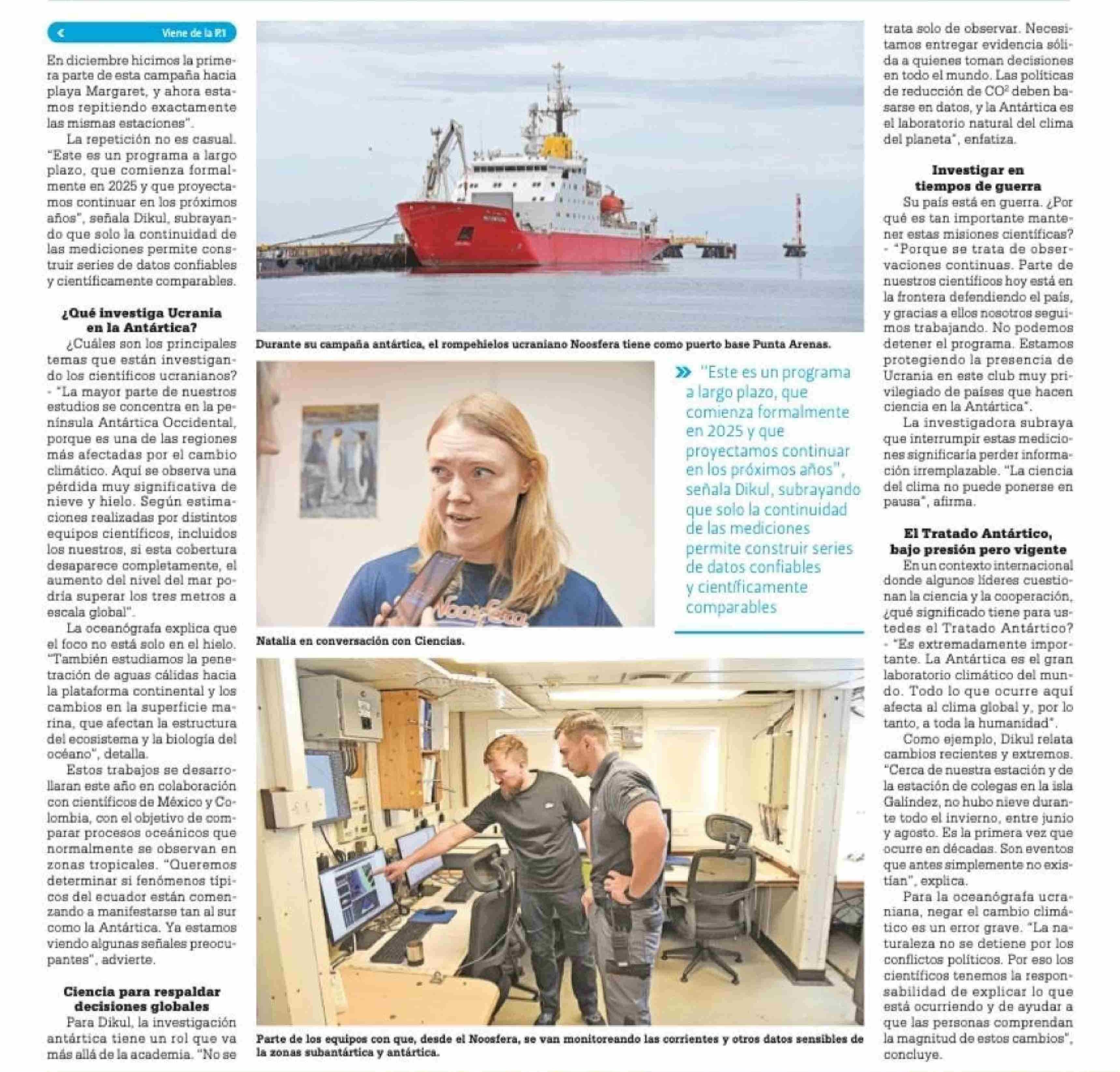 Título: Ciencia en medio de la guerra: la oceanógrafa ucraniana Natalia Dikul refuerza observaciones clave en la Antártica