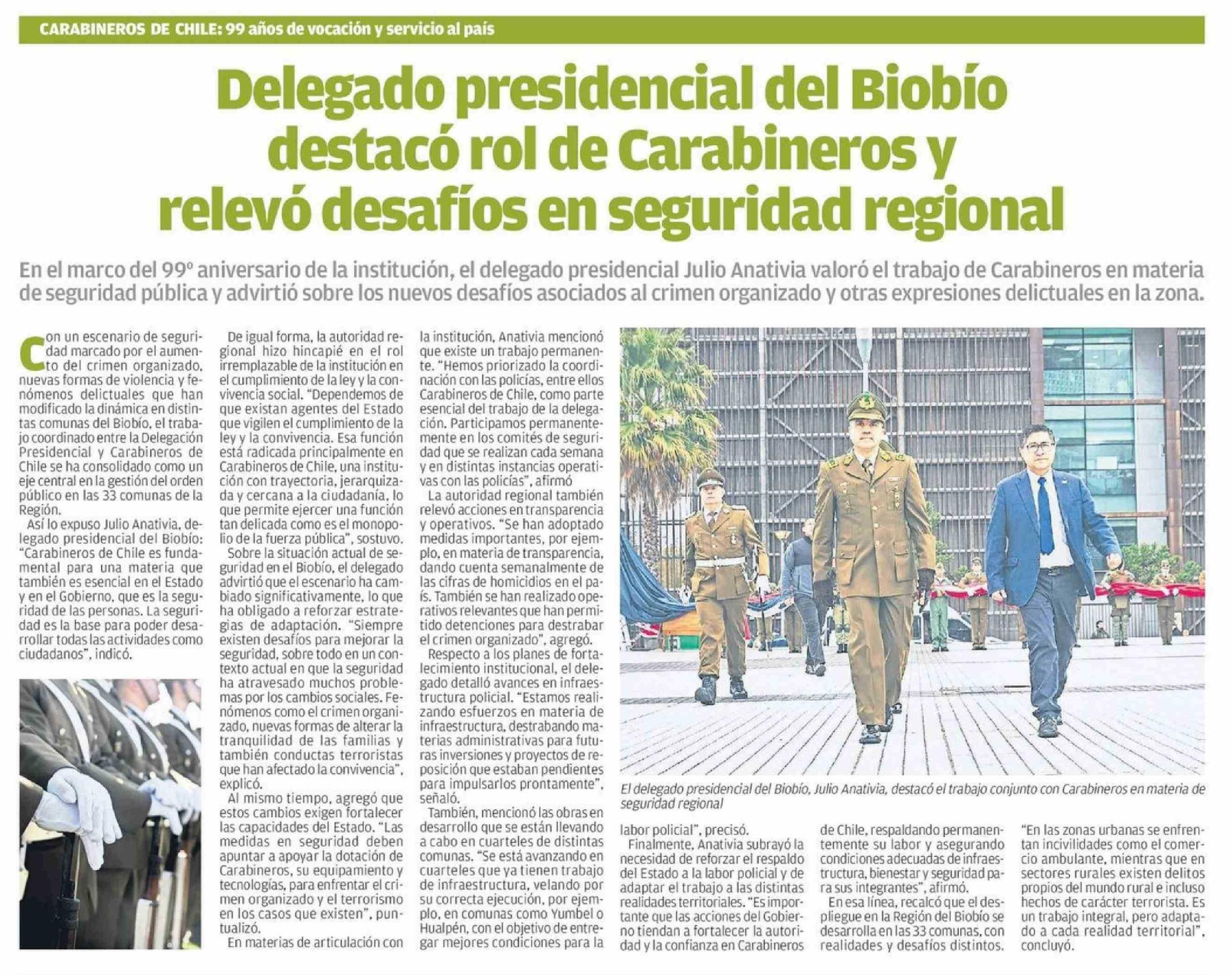 Título: Delegado presidencial del Biobio destacó rol de Carabineros y relevo desafíos en seguridad regional