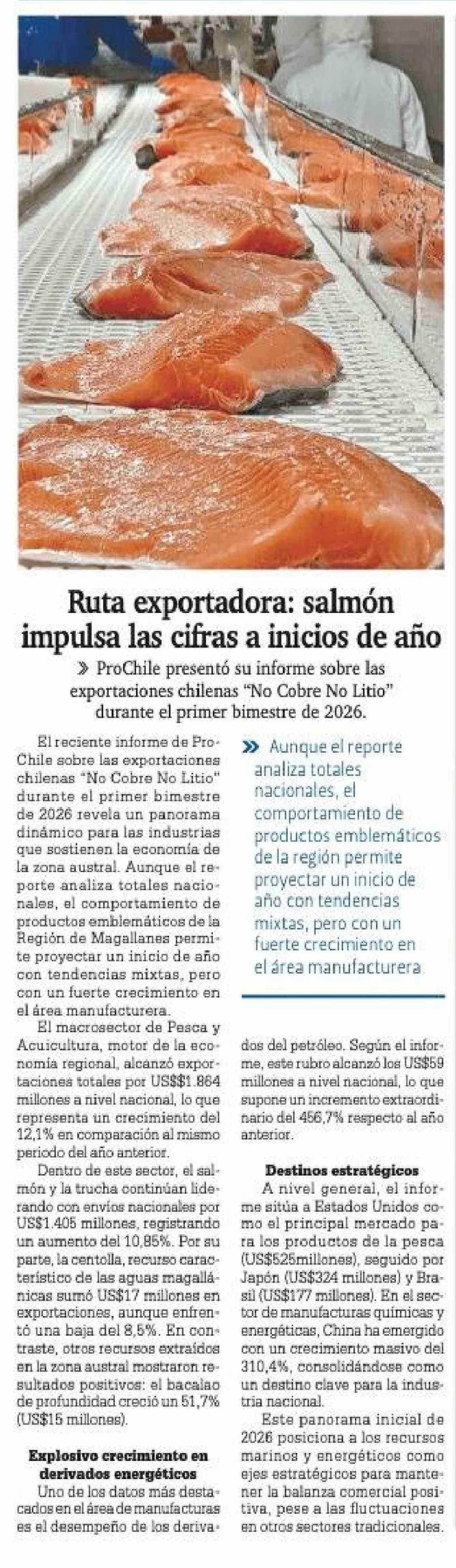 Ruta exportadora: salmón impulsa las cifras a inicios de año 07-03-2026 La Prensa Austral |