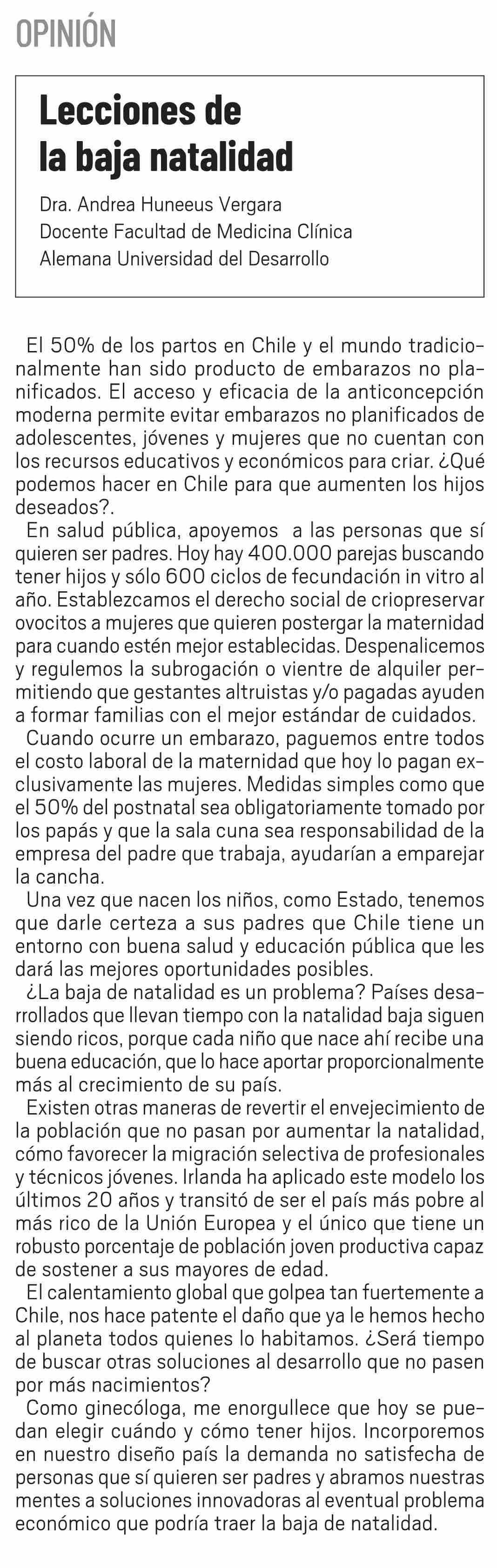 | Título: | Columnas de Opinión: Lecciones de la baja natalidad |