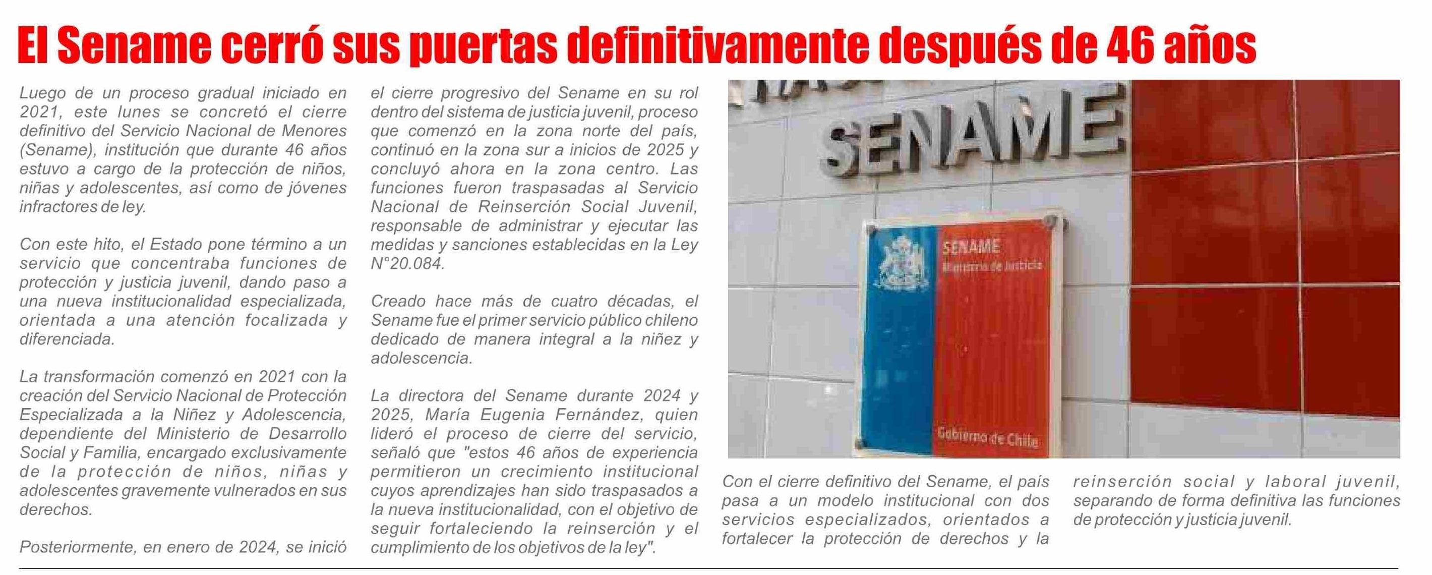 | Título: | EI Sename cerró sus puertas definitivamente después de 46 años |