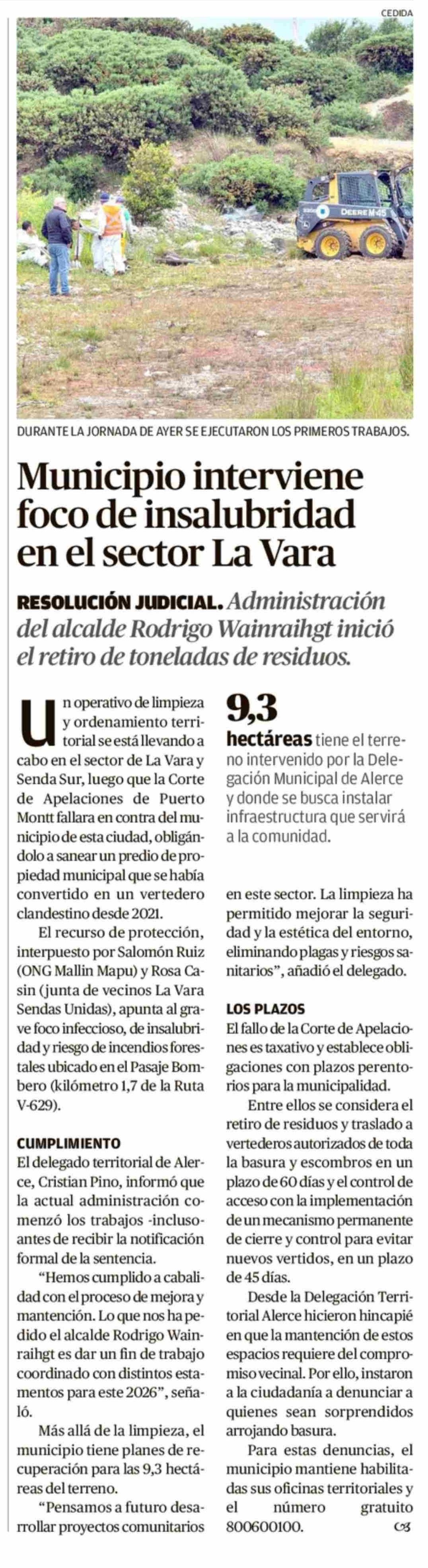 Municipio interviene foco de insalubridad en el sector La Vara 07-02-2026 El Llanquihue |