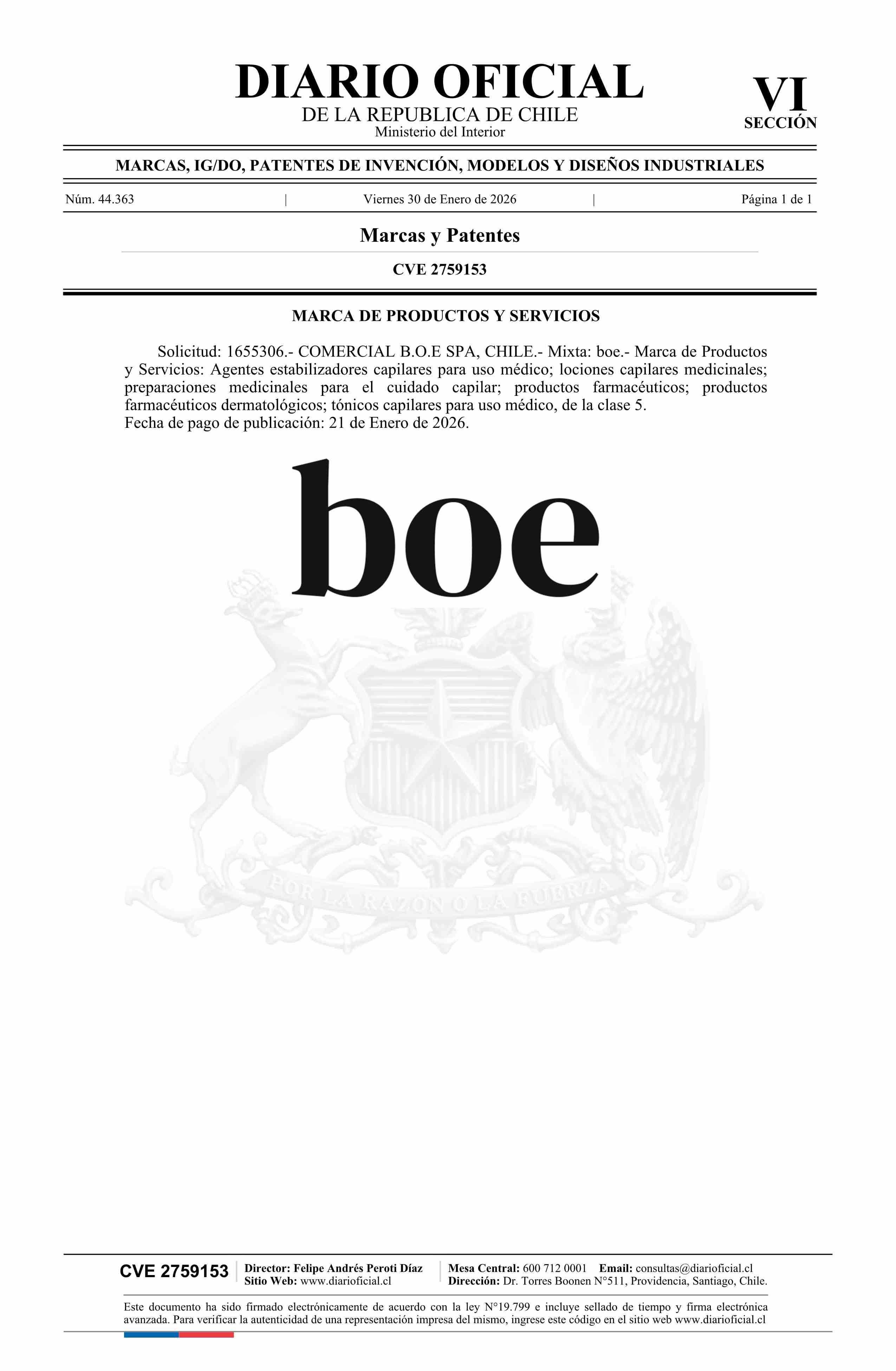 Solicitud número 1655306.- boe 30-01-2026 Diario Oficial Edición Electrónica |