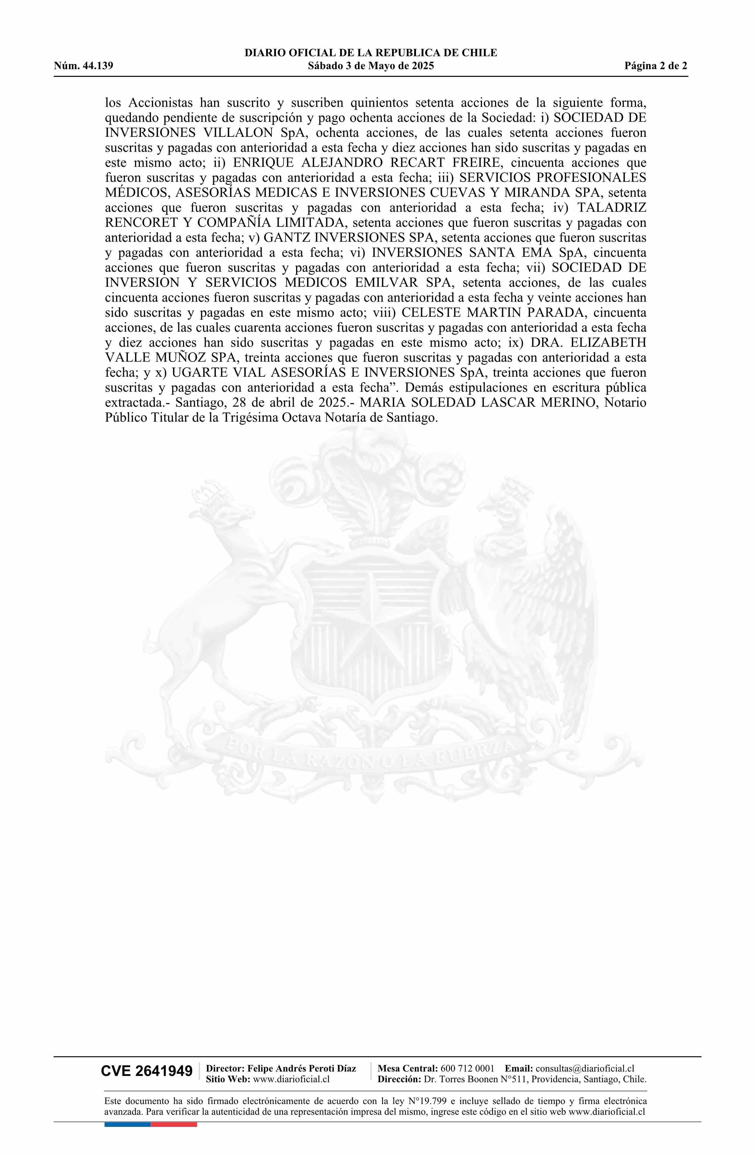 DERMATOPLÁSTICA SpA 77.494.586-5* 03-05-2025 Diario Oficial Edición Electrónica |