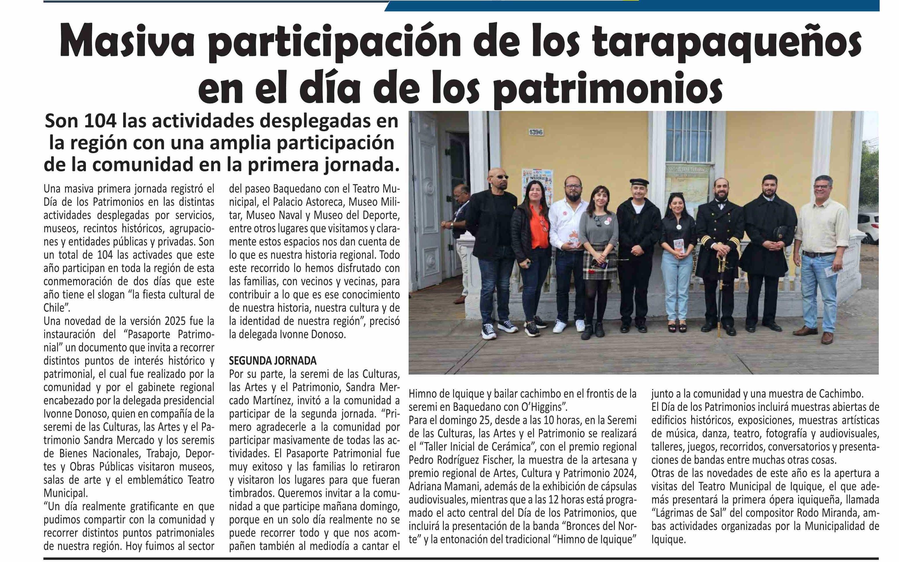 | Título: | Masiva participación de los tarapaqueños en el día de los patrimonios |