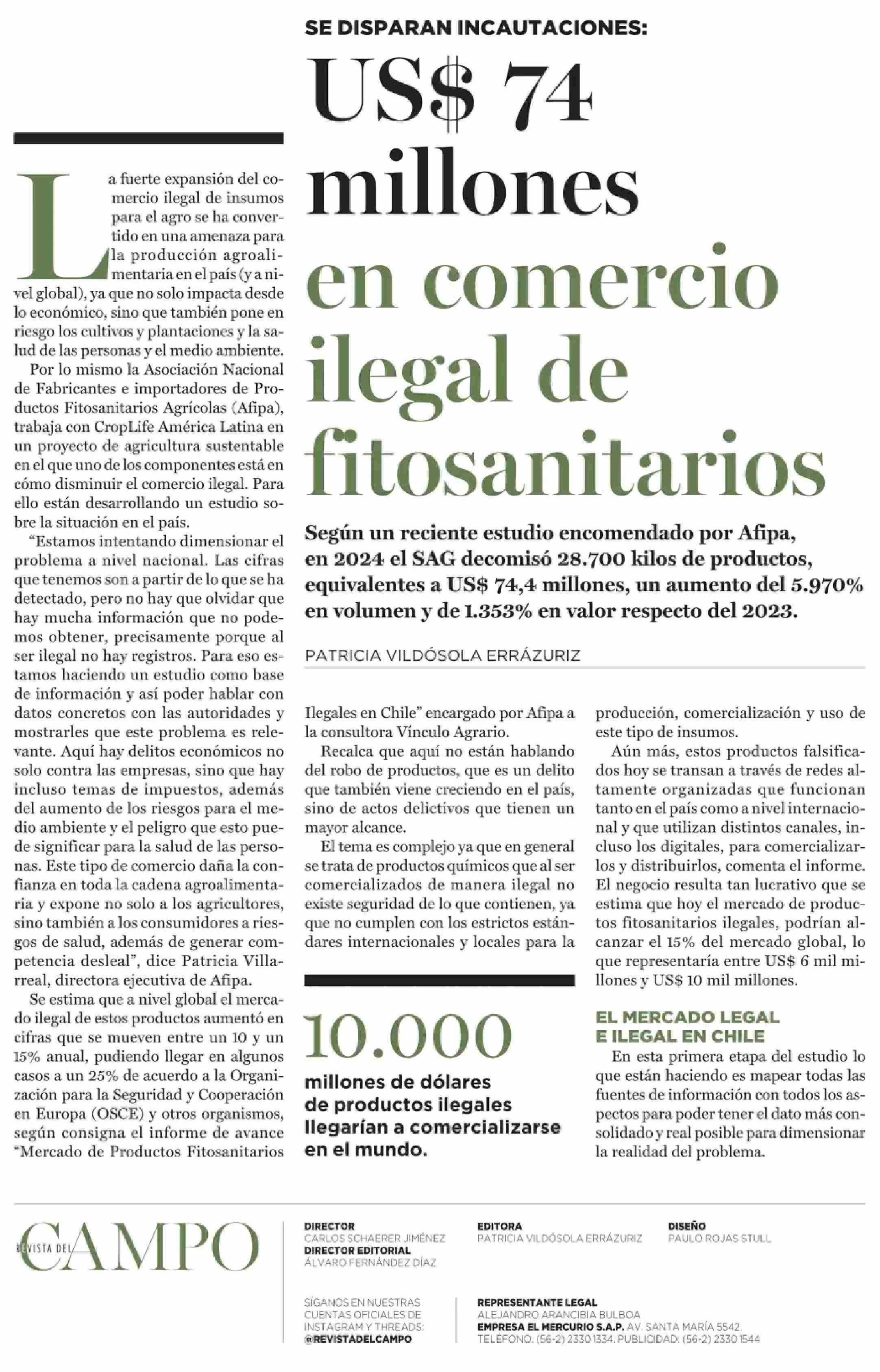 US$ millones en comercio ilegal de fitosanitarios 16-02-2026 El Mercurio |