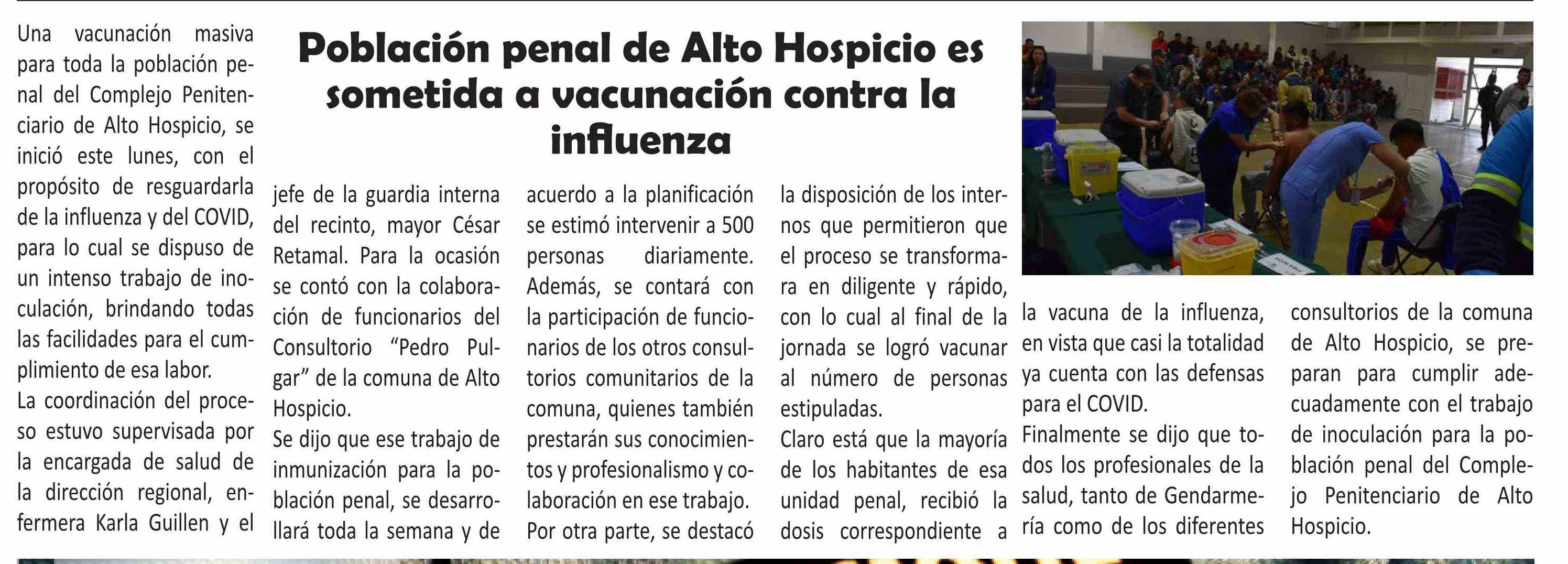 | Título: | Población penal de Alto Hospicio es sometida a vacunación contra la influenza |