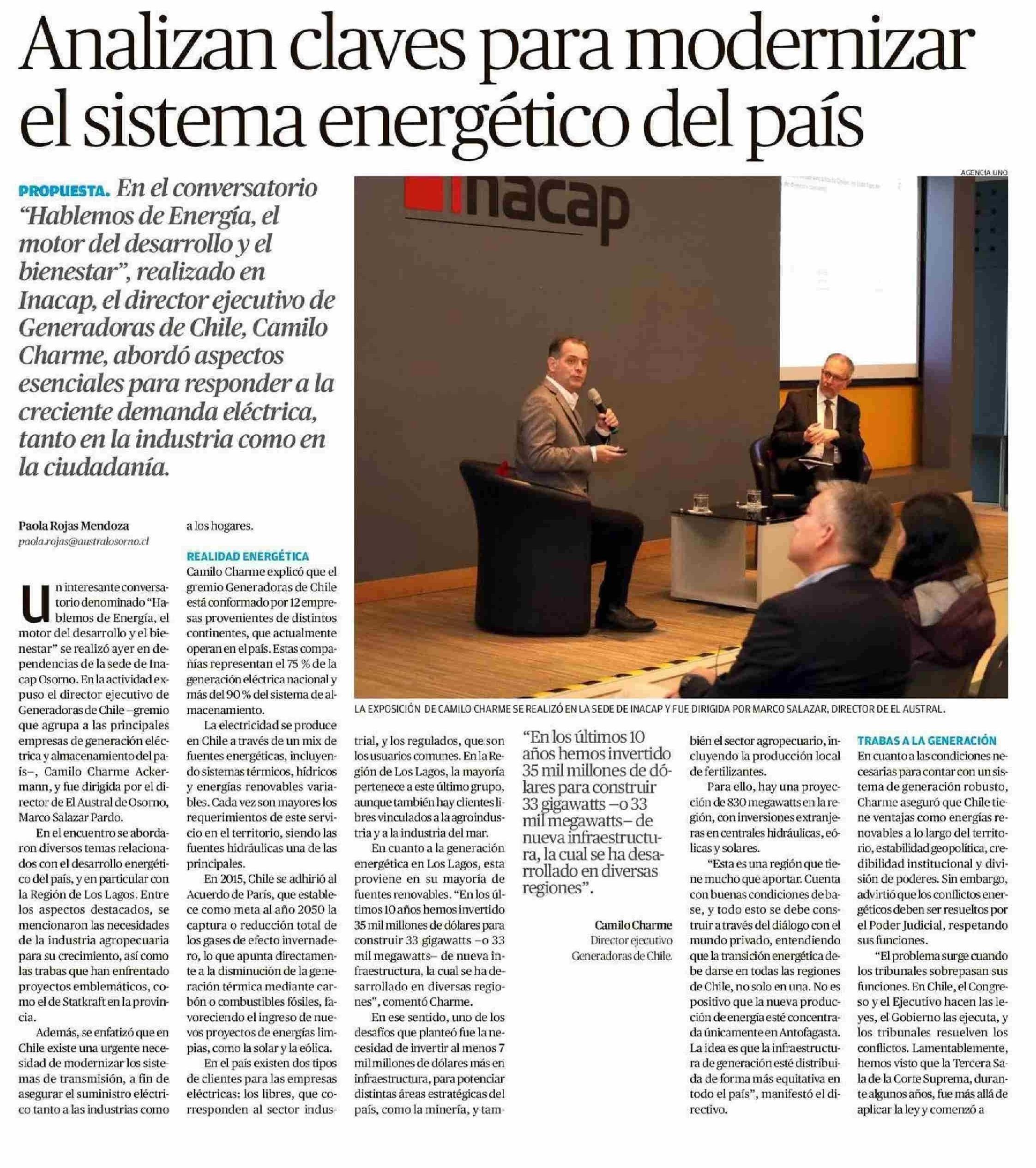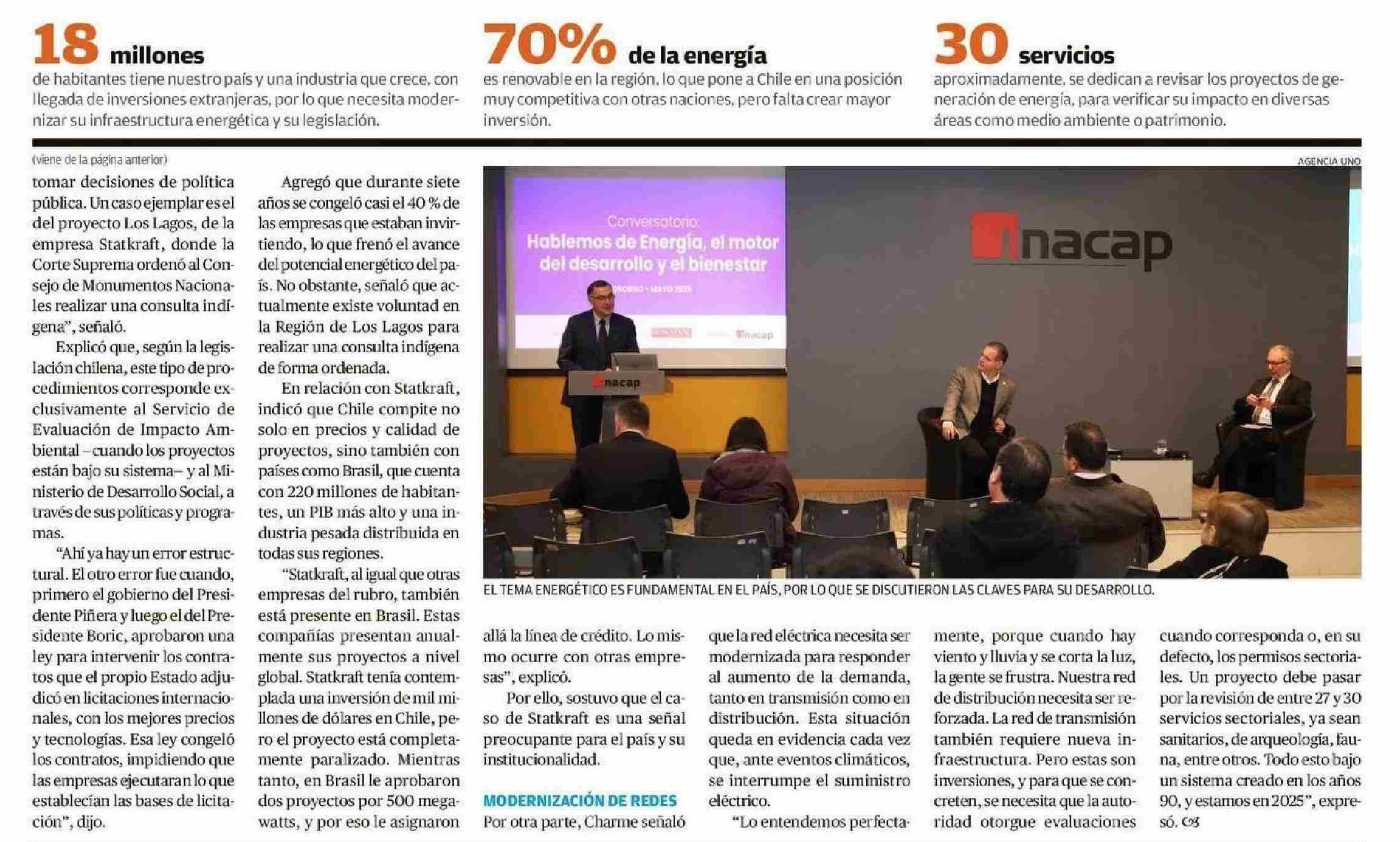 Analizan claves para modernizar el sistema energético del país 14-05-2025 El Austral de Osorno |