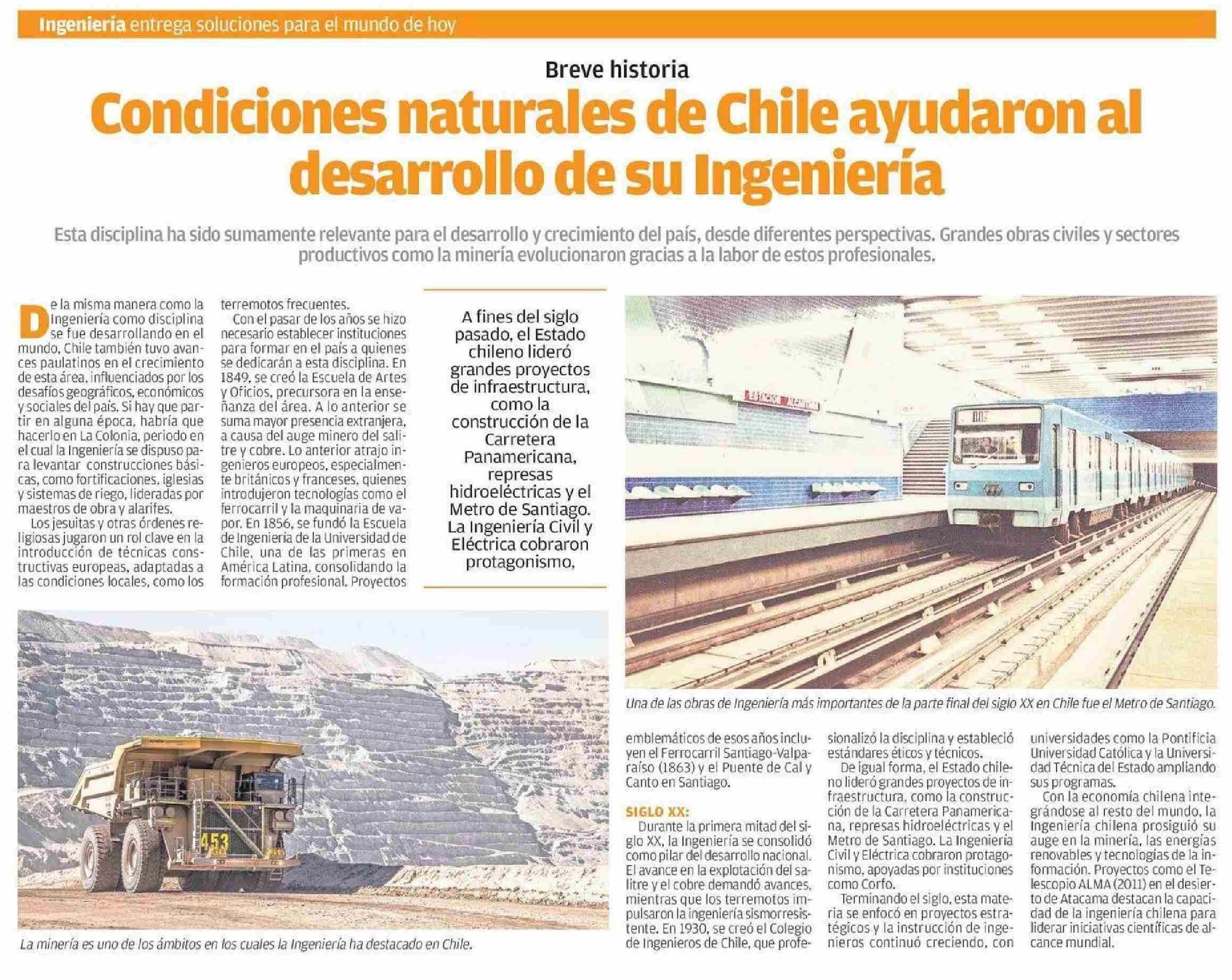 Título: Condiciones naturales de Chile ayudaron al desarrollo de su Ingeniería