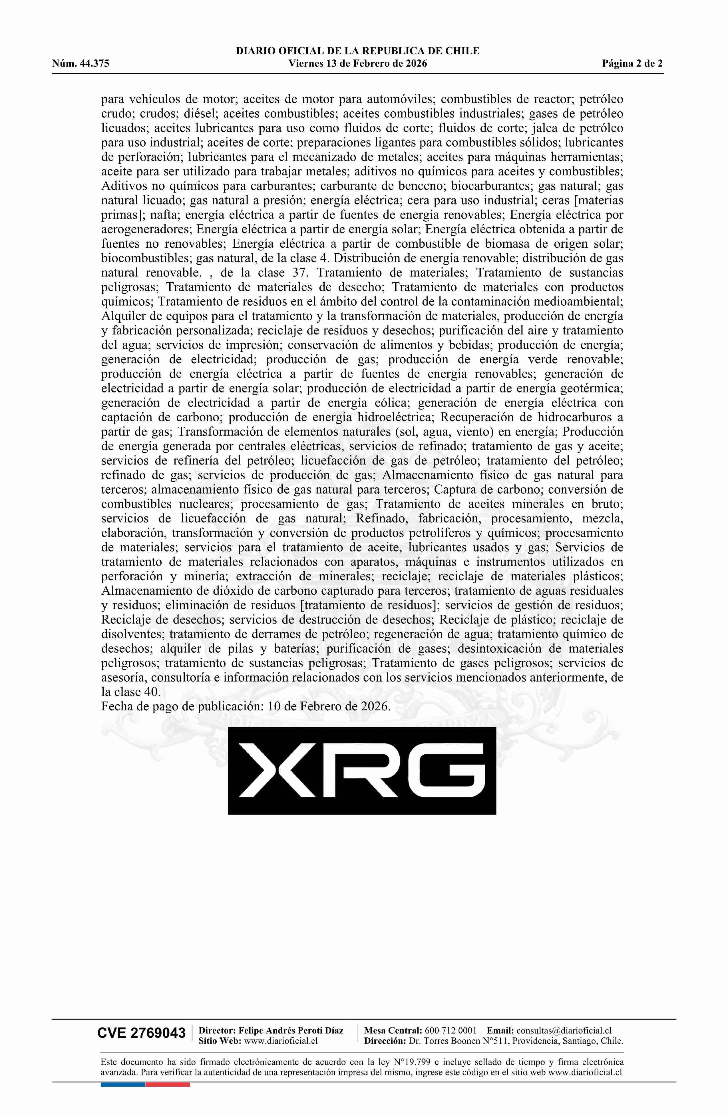 Solicitud número 1642033.- XRG 13-02-2026 Diario Oficial Edición Electrónica |