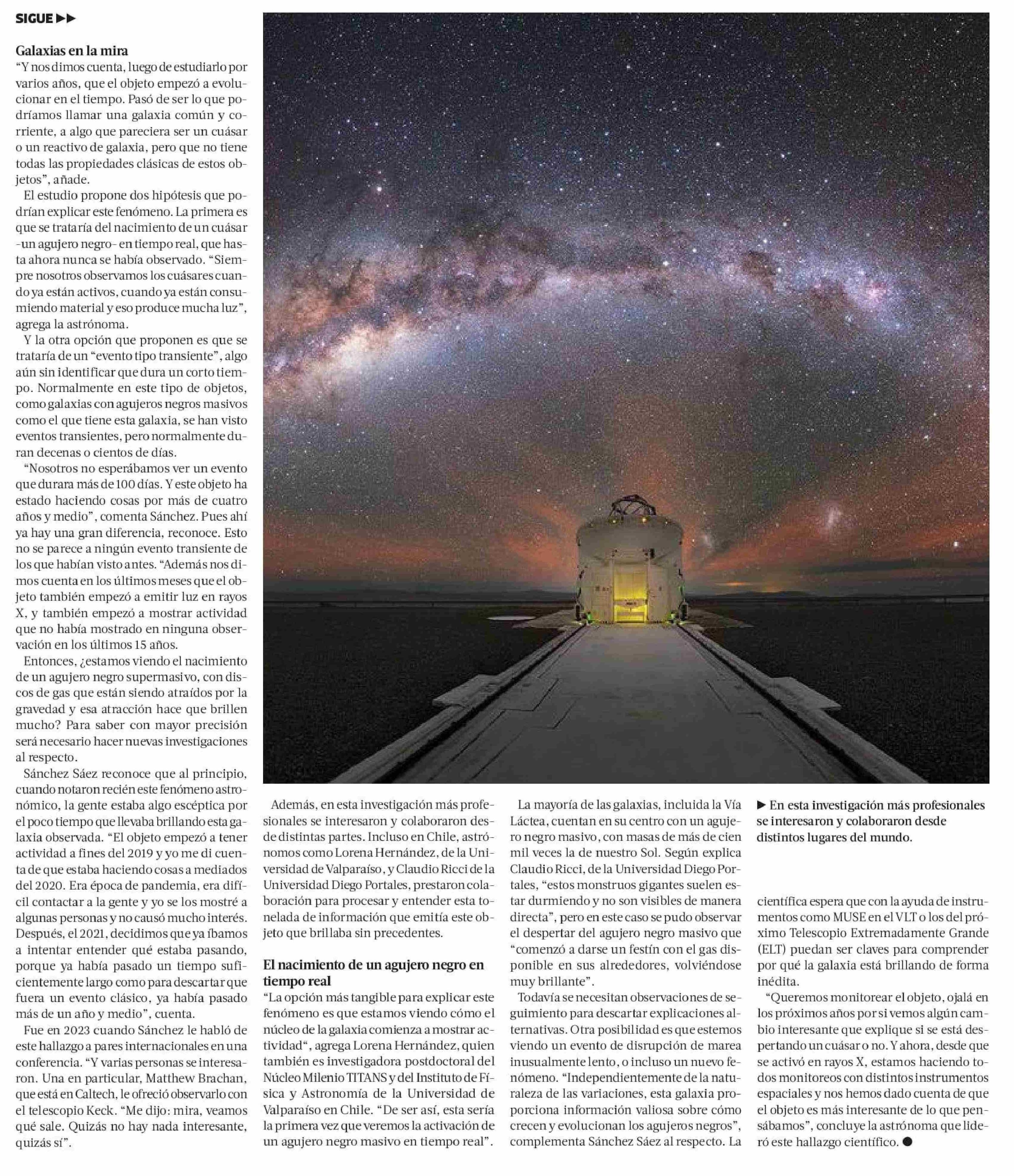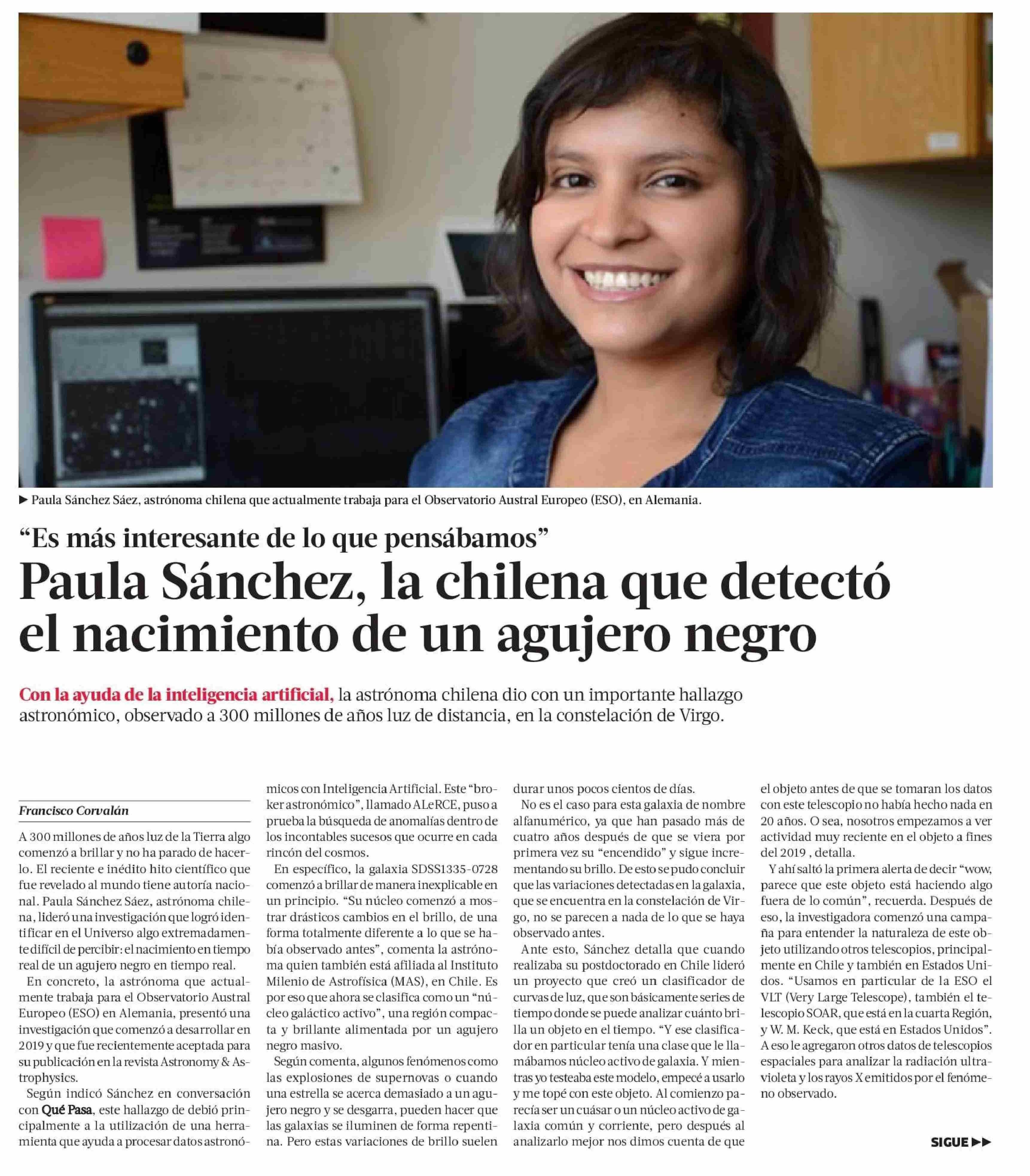 Paula Sánchez, la chilena que detectó el nacimiento de un agujero negro 19-06-2024 La Tercera |